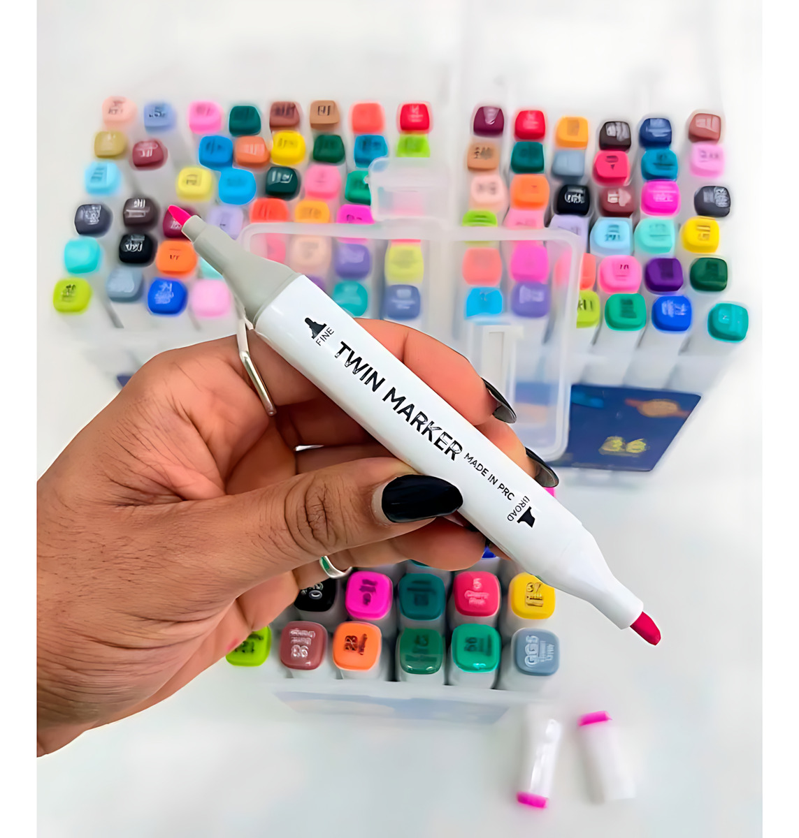 ¡Descubre un mundo de colores vibrantes y posibilidades infinitas con nuestro Set de 80 Marcadores Doble Punta! Estos marcadores permanentes a base de alcohol son la herramienta perfecta para dar vida a tus ideas en papel, cerámica, vidrio, madera, tela ¡y mucho más!