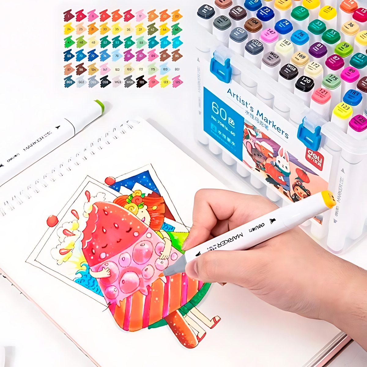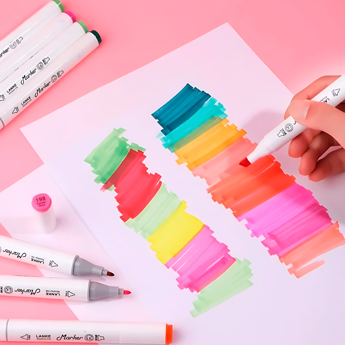Equipados con puntas dobles, nuestros marcadores ofrecen una versatilidad excepcional. La punta ancha permite una cobertura rápida, mientras que la punta de bala puntiaguda es ideal para detalles, sombreado, bocetos y escritura. Además, su calidad premium garantiza líneas nítidas y colores intensos en cada trazo.