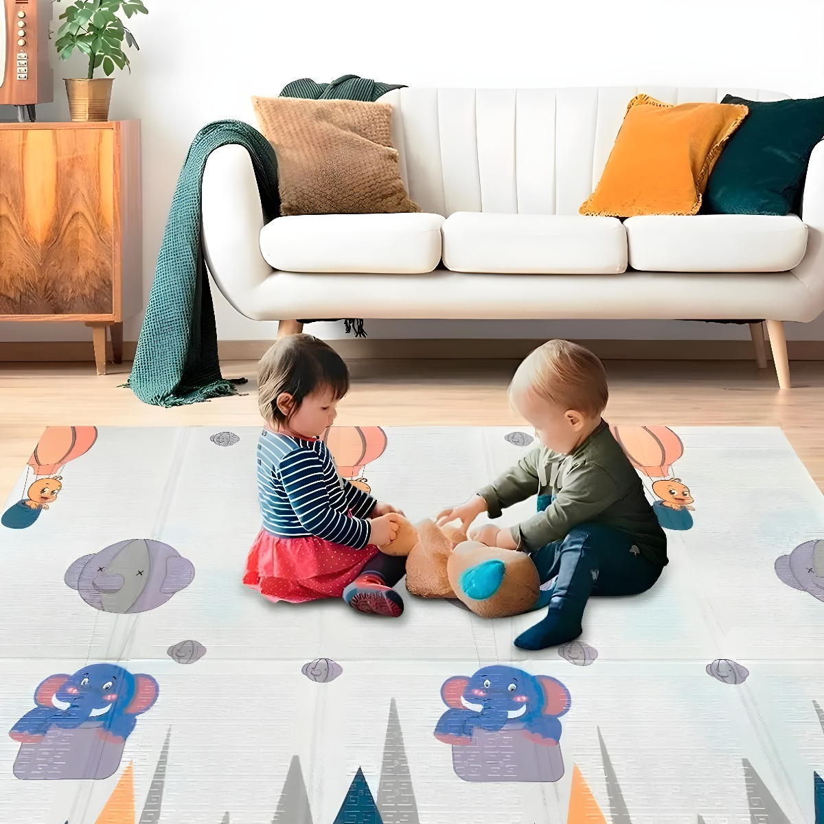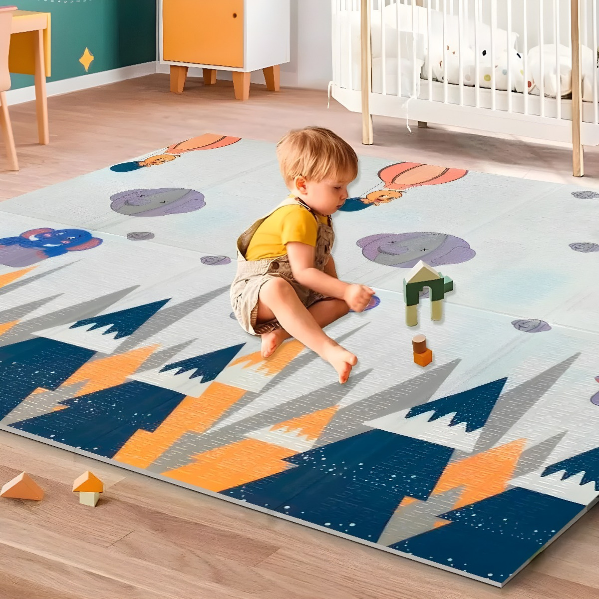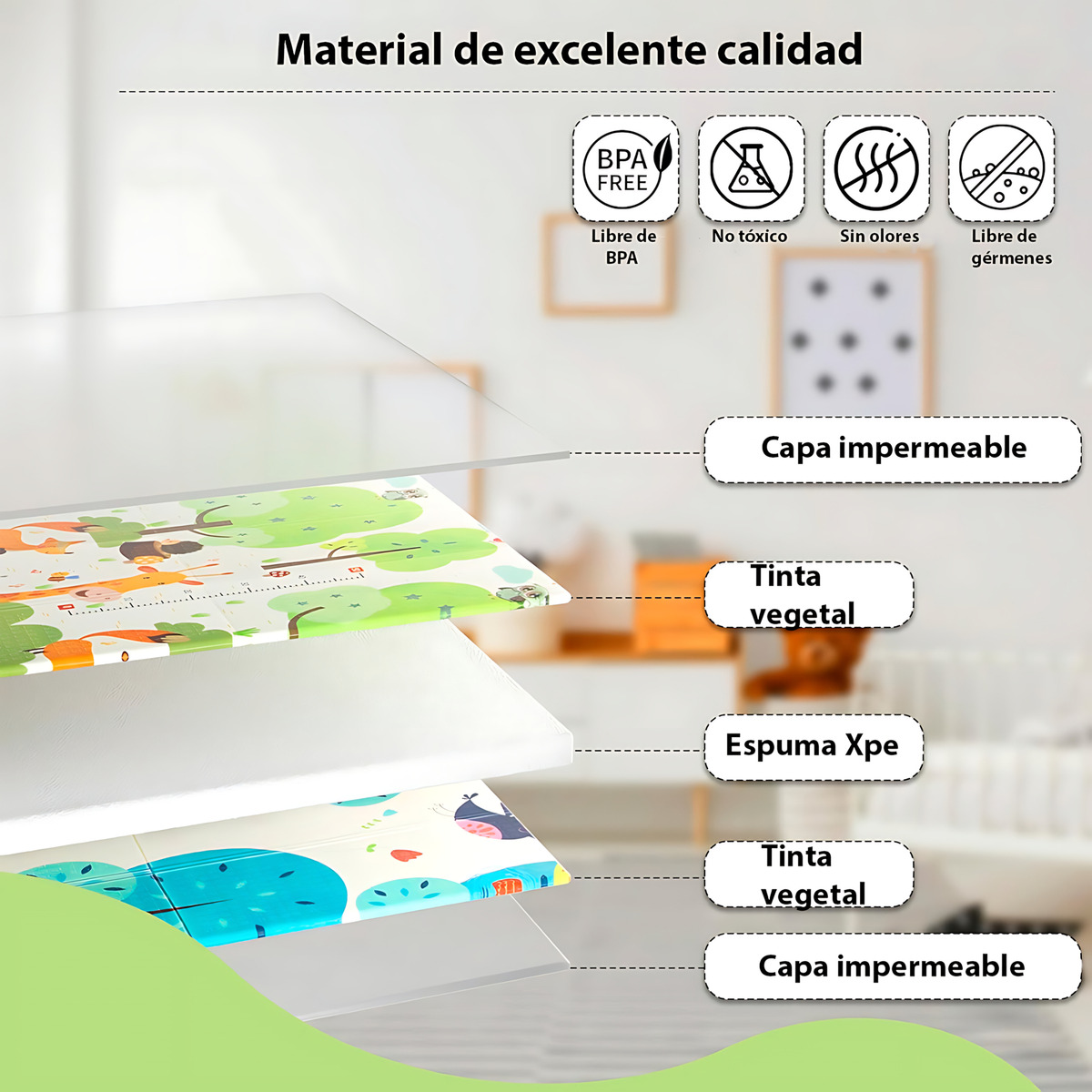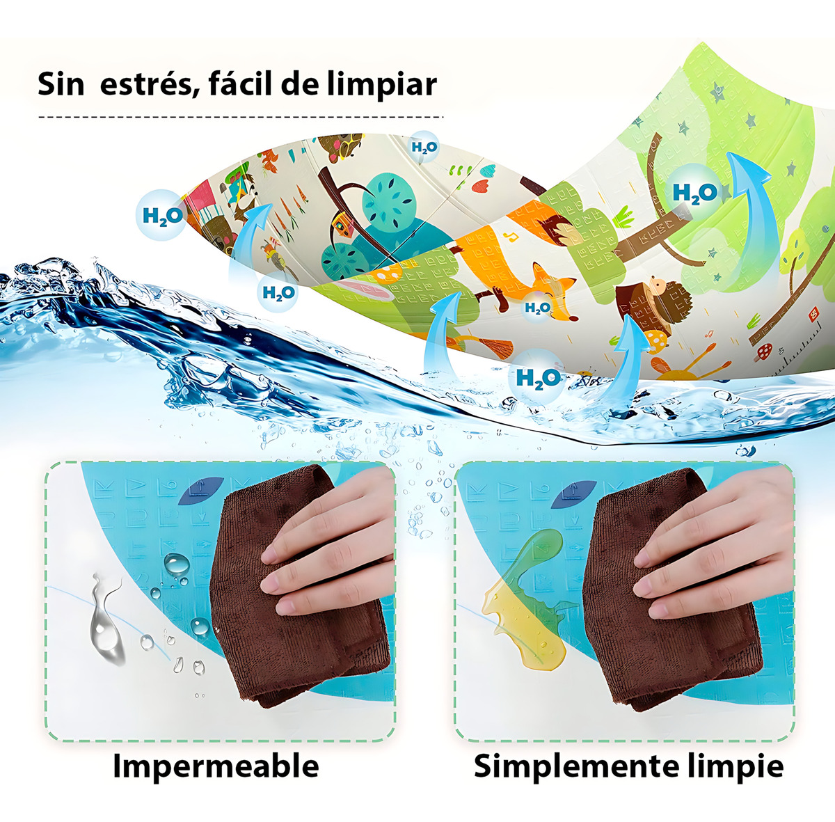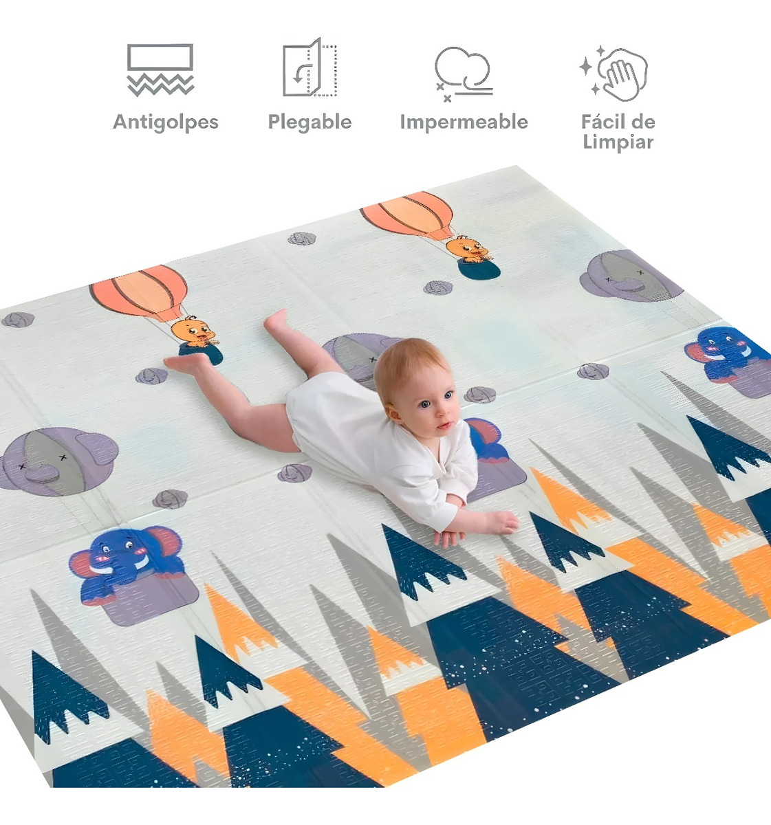 Esta alfombra plegable impermeable es perfecta para bebés y niños. Fabricada con material XPE de alta calidad, proporciona una superficie suave y segura donde tu bebé puede jugar, gatear e incluso tomar pequeñas siestas sin riesgo de golpes.