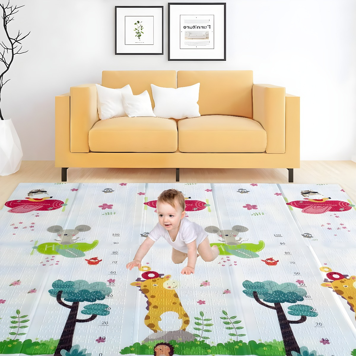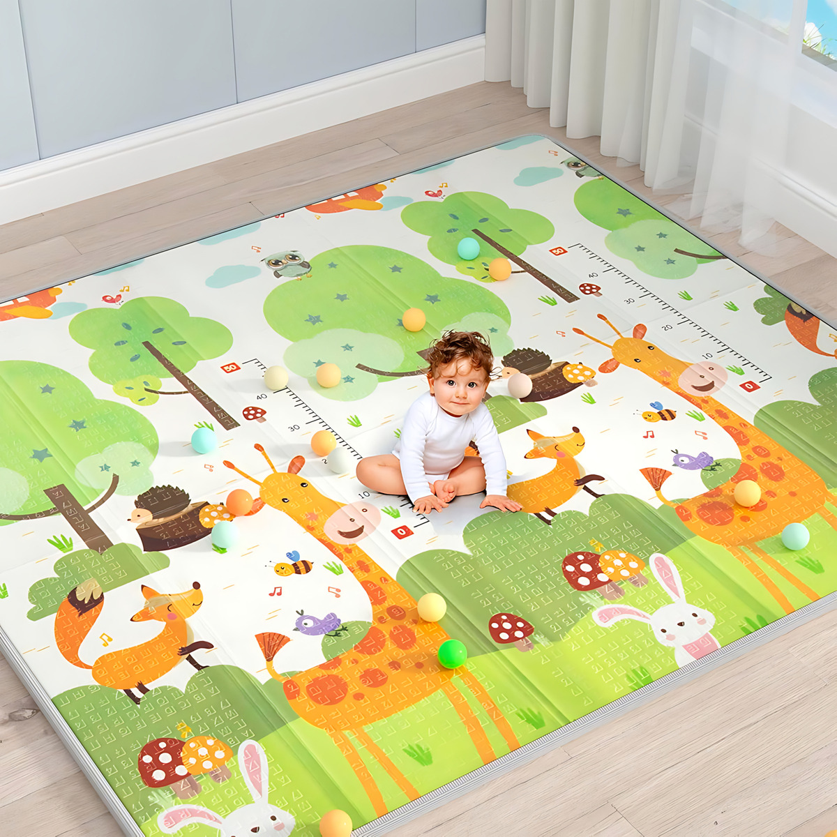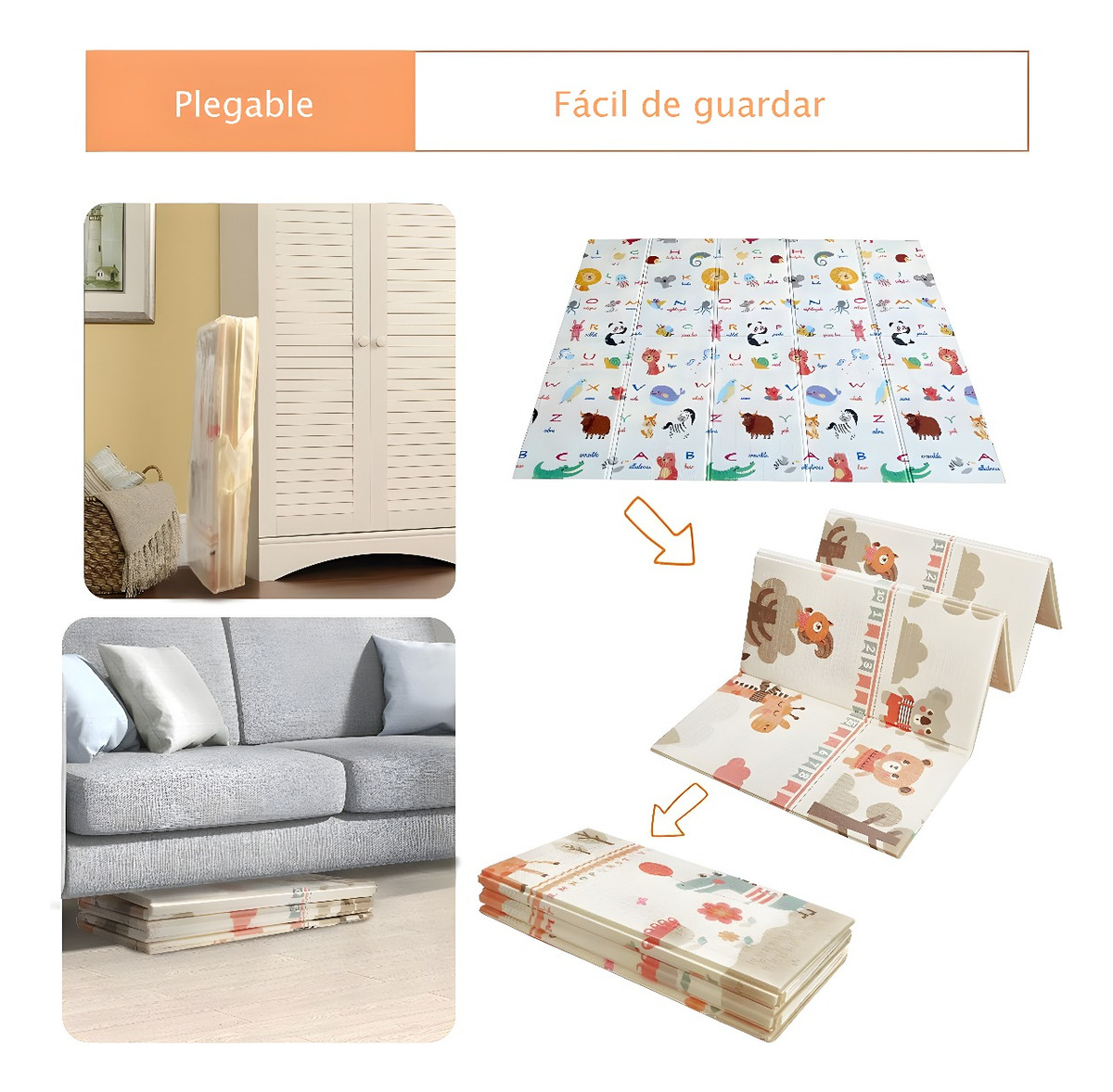 Gracias a su diseño plegable, puedes almacenar y transportar esta alfombra fácilmente a cualquier lugar: jardín, parque, playa, sala, dormitorio o cualquier área donde tu bebé necesite un espacio limpio y cómodo para jugar.