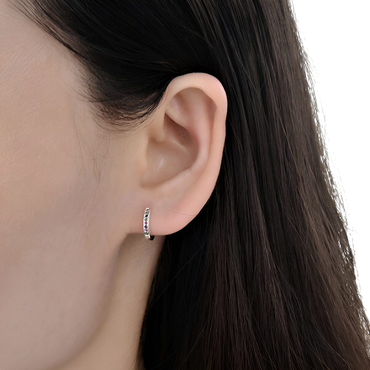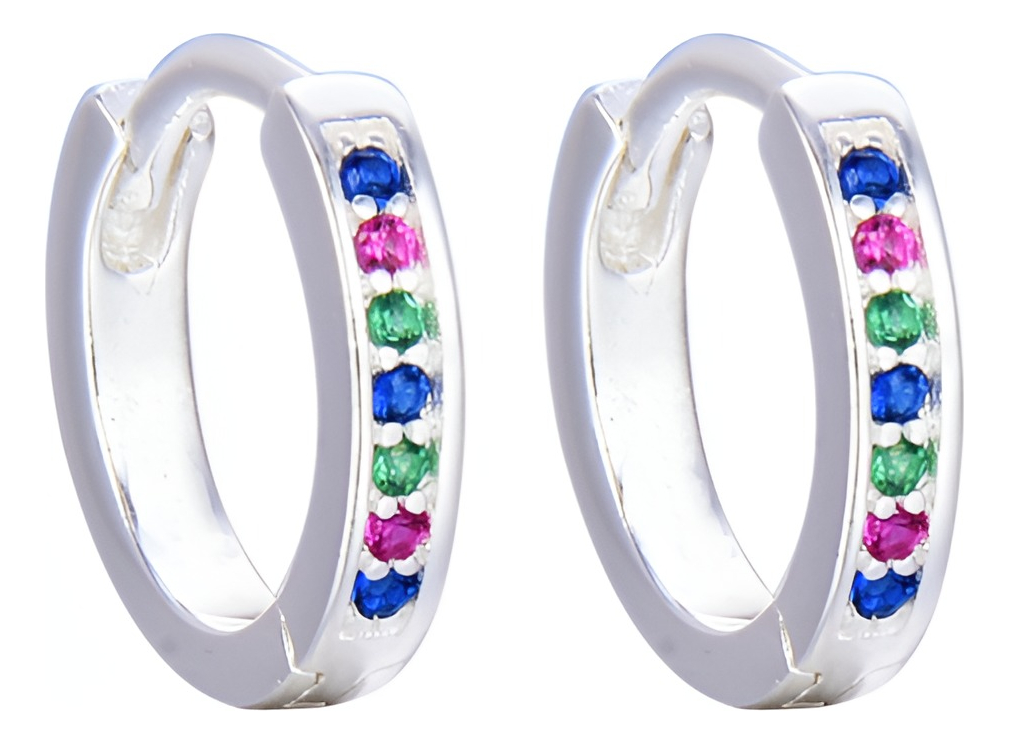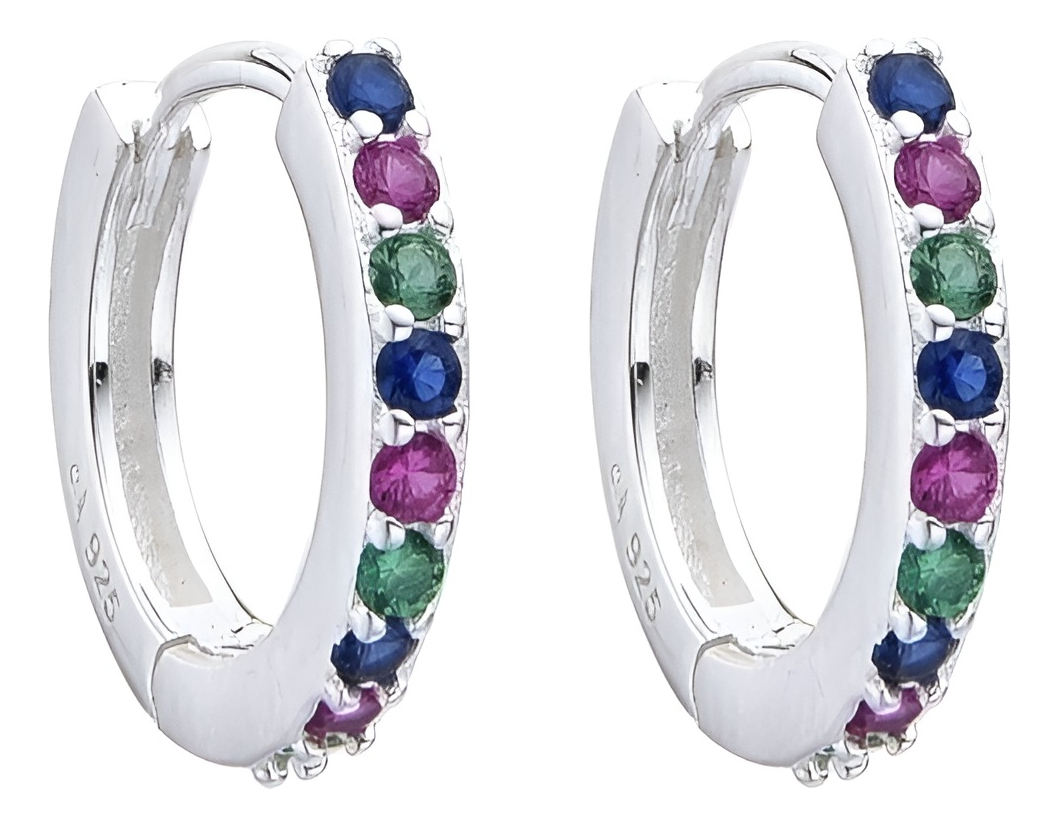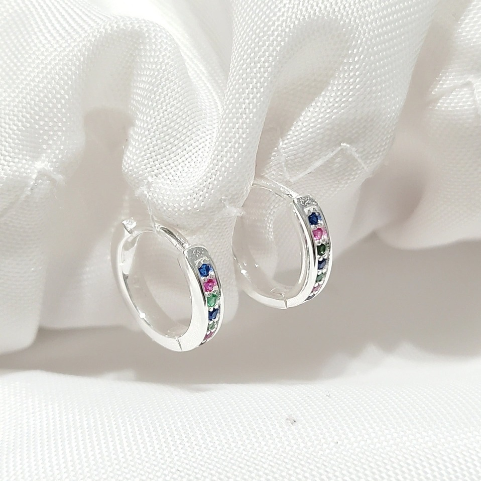 Confeccionados en plata de ley 925, cada aro cuenta con una fila de 6 zirconias de colores que brillan con un resplandor cautivador, añadiendo un toque de alegría y vitalidad a tu apariencia. Su diseño hermoso y simple los hace perfectos para hombres y mujeres que buscan un toque de color y brillo en su look diario.