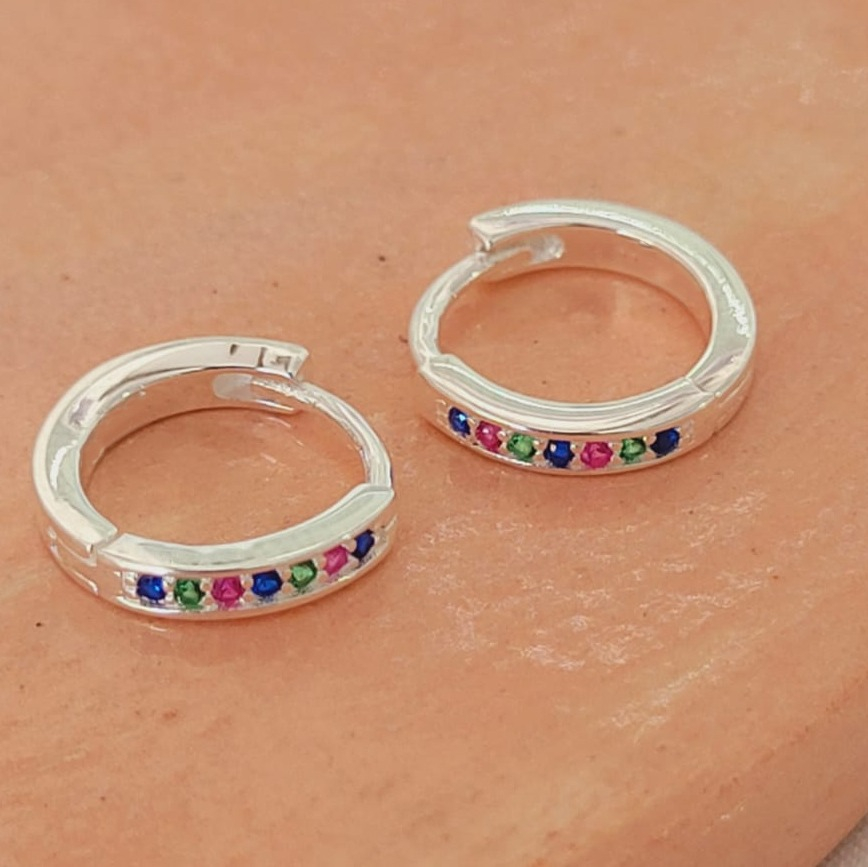 Aros Huggie Plata 925 con Zirconias de Colores 12,5mm – ¡Brillo y Estilo en Cada Paso!