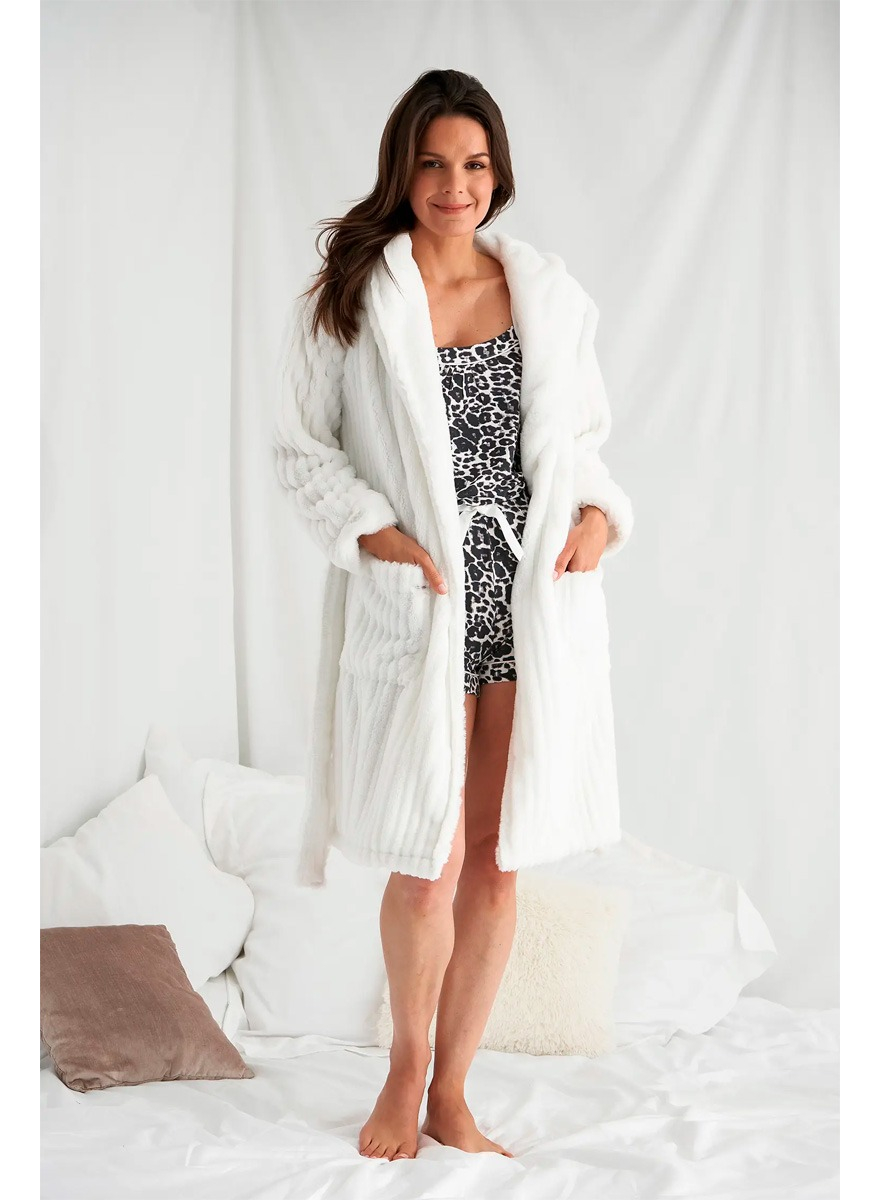 Bata De Baño Mujer Blanca Felpa Suave Con Capucha Talle S A L