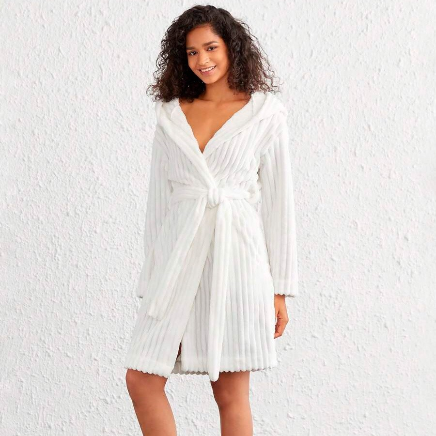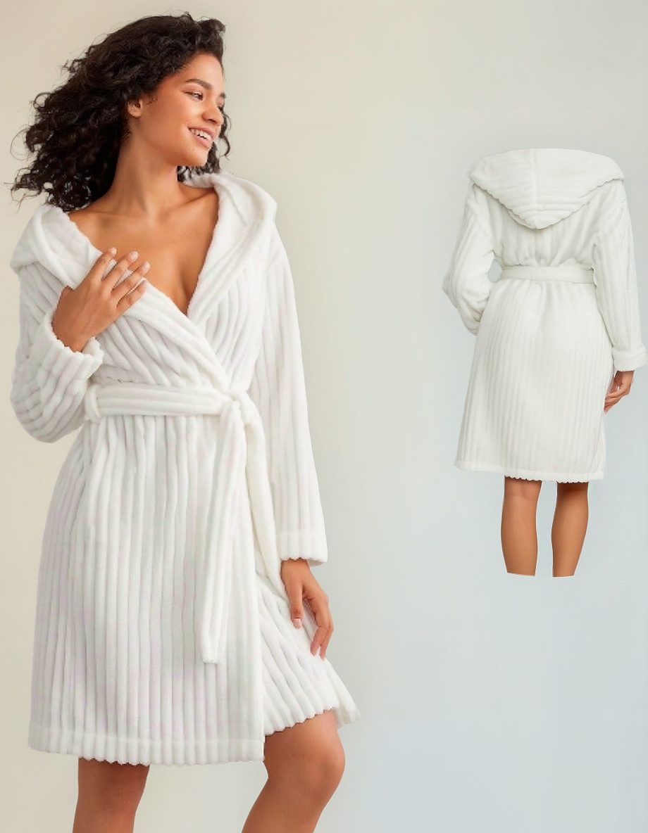 ¡Dale un mimo a tu rutina diaria con esta espectacular bata de baño de mujer blanca de felpa! Ideal para esos momentos de relax, después de un baño caliente o para disfrutar un domingo de descanso en casa.