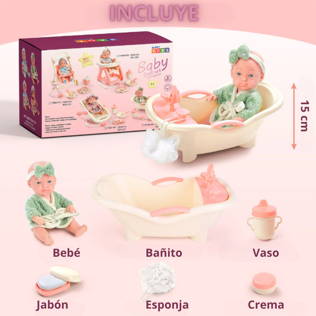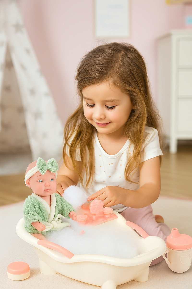 Bebote Reborn 23cm Con Bañera Y Accesorios De Baño Muñeca Realista