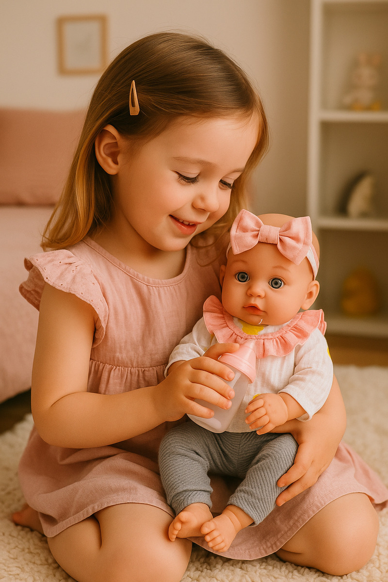 Este tipo de juguetes estimula la imaginación y permite que los niños practiquen el cuidado, la ternura y la responsabilidad. Perfecto para jugar a ser mamá o papá, recrear escenas cotidianas y acompañar en cada momento.