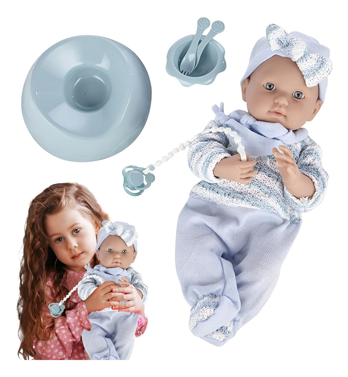 Bebote Con Pelela Plato Y Chupete Muñeco Tipo Reborn
