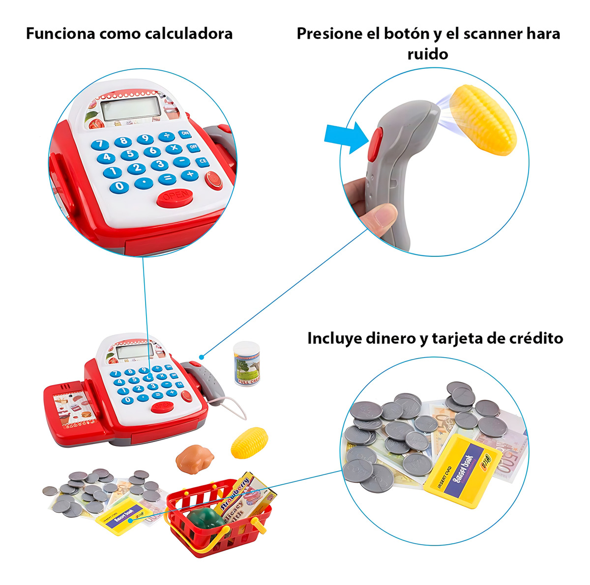 Imagina a tu hijo aprendiendo mientras juega a ser un vendedor, escaneando productos, contando billetes y monedas, y explorando el mundo del comercio. ¡Un juguete que combina diversión y aprendizaje!