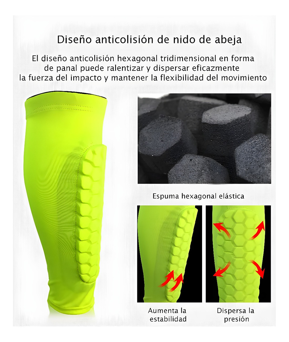 Diseño en Forma de Panal: Distribuye eficazmente las fuerzas de impacto y absorbe rápidamente los golpes, garantizando la seguridad de tus piernas en cada jugada.