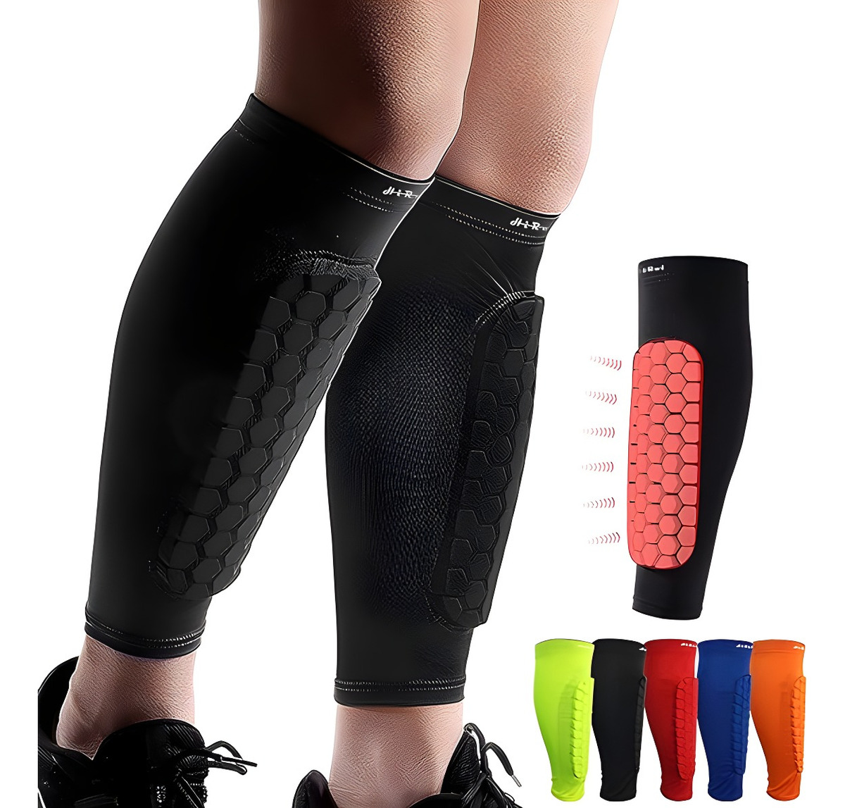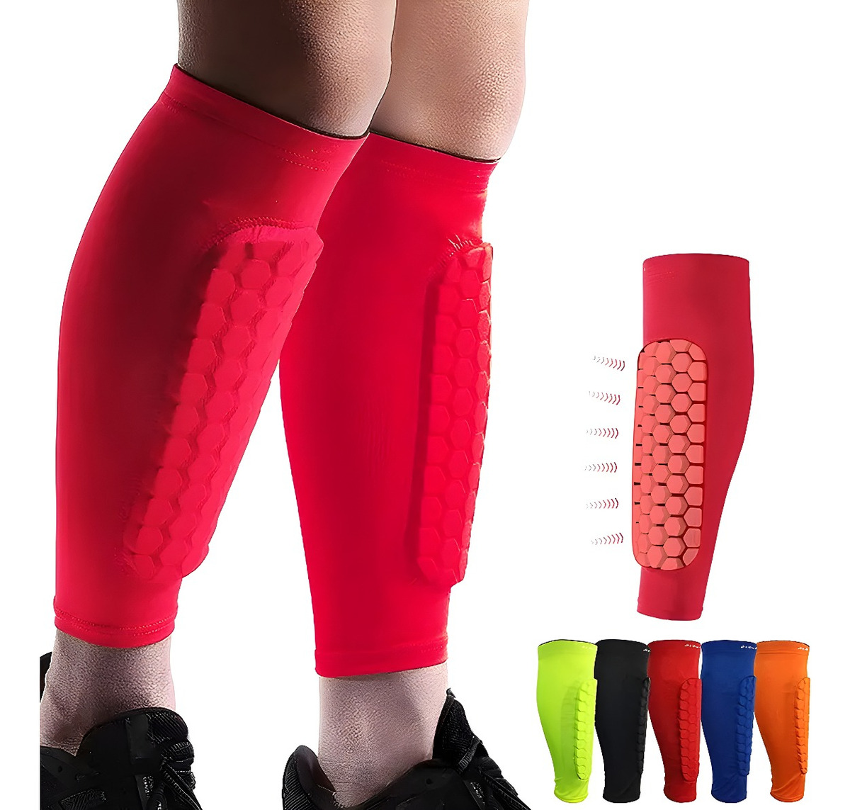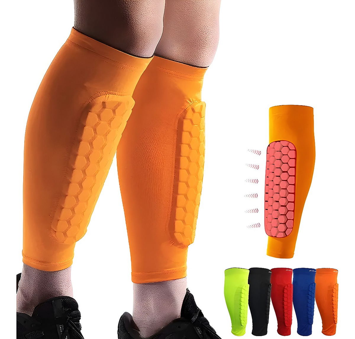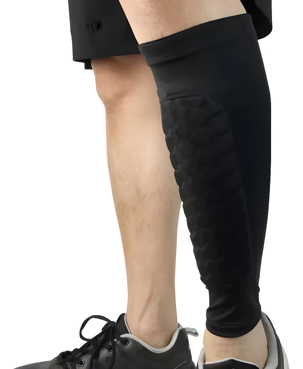 Bloque Anticolisión de Esponja: Equipadas con un bloque de esponja en forma de panal, estas canilleras ofrecen una textura y dureza óptimas para una protección superior. Además, las mangas de compresión envuelven y sostienen tus piernas, facilitando la transpiración y el confort.