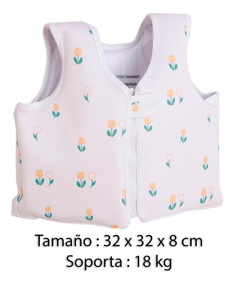 El rango de peso para éste chaleco, indicado por el fabricante, es para bebes y niños que pesan hasta 18,5 kg