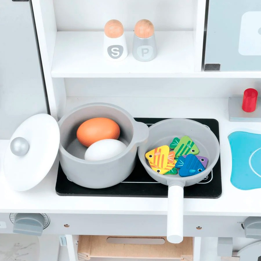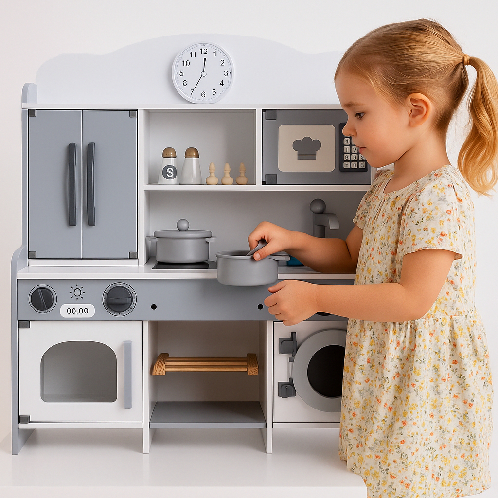 Su diseño moderno y realista transforma cualquier rincón en una mini cocina profesional. Fabricada con materiales resistentes y pintura no tóxica, es segura para niños y niñas a partir de 3 años.
