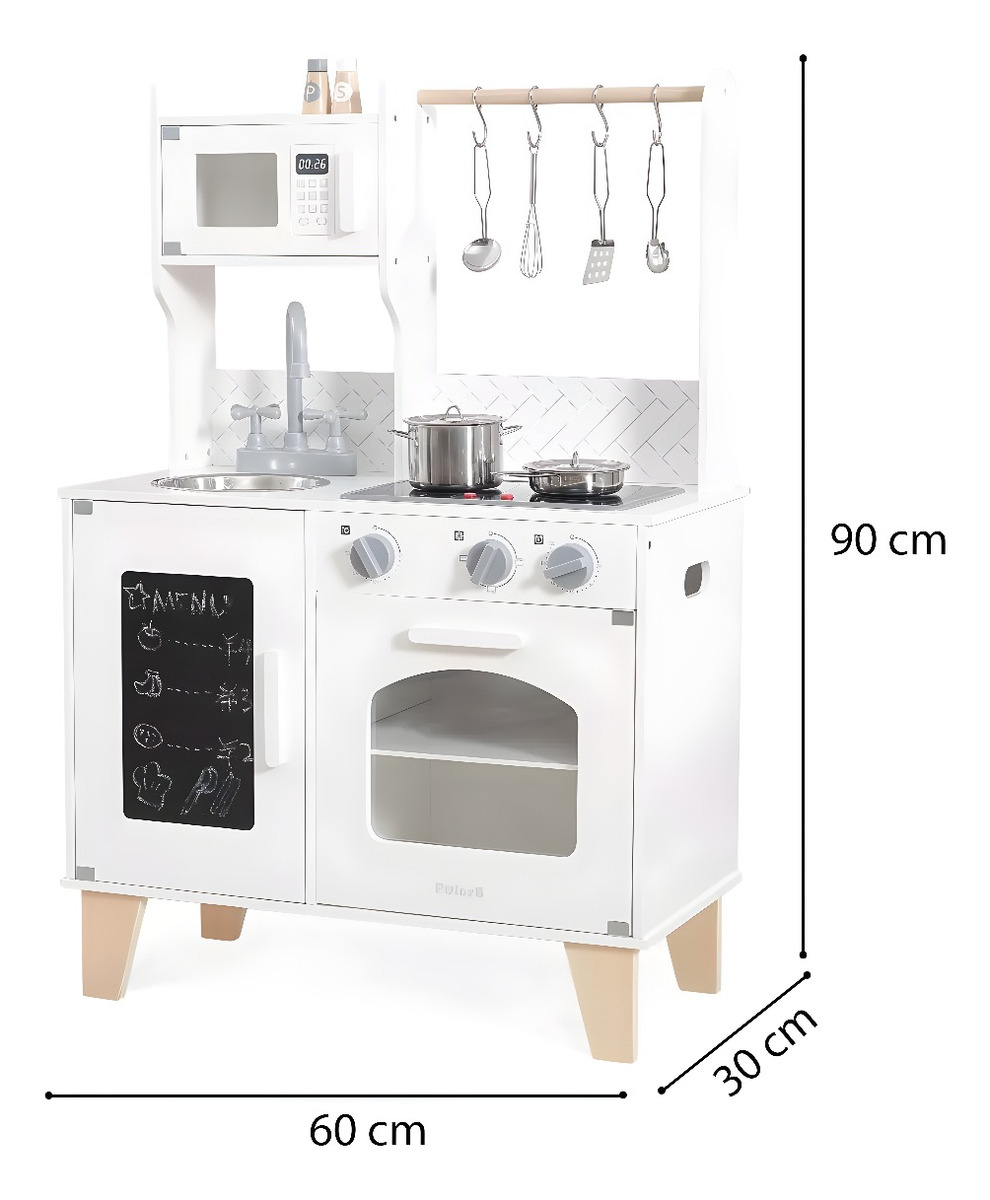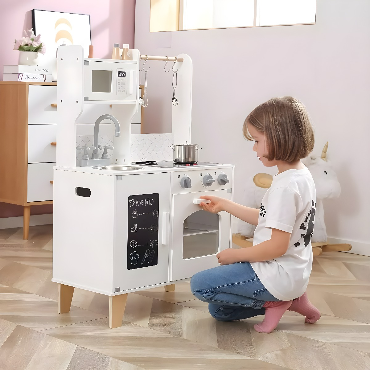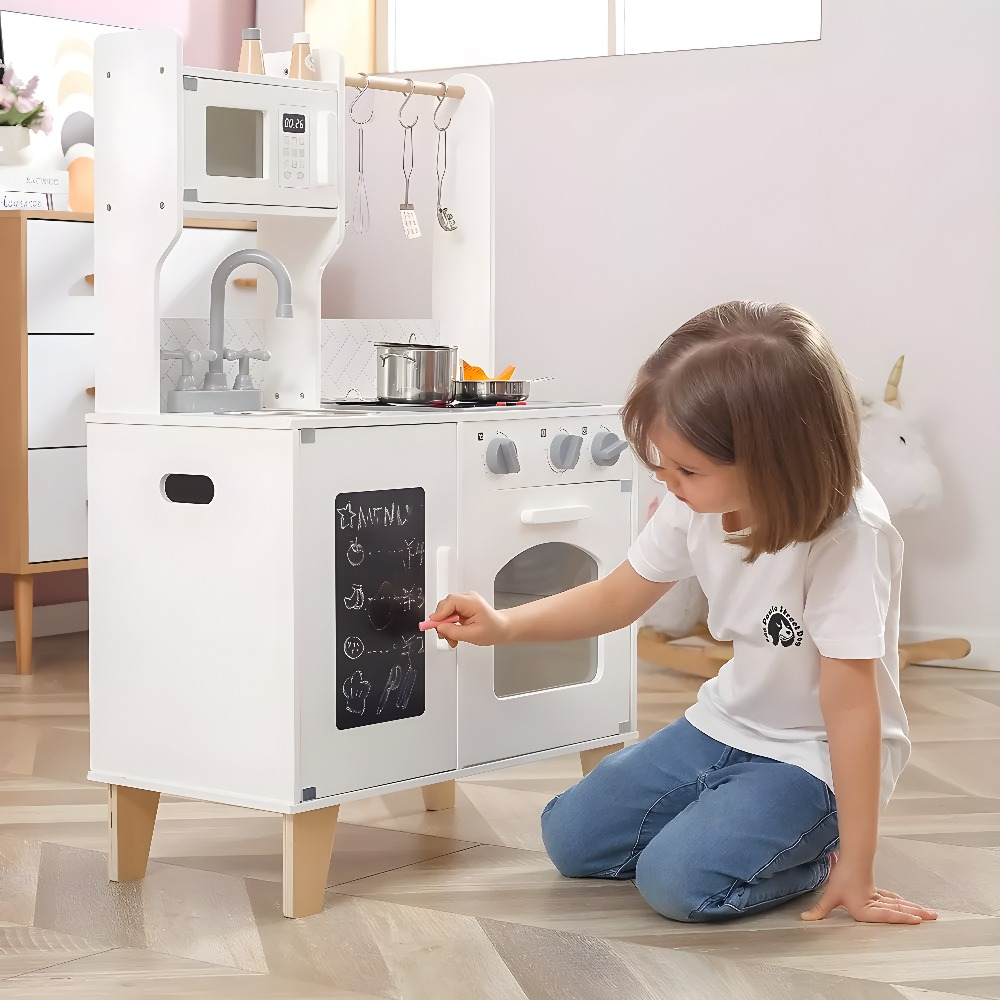 ¡Haz que cocinar sea un juego fascinante para los pequeños! Equipada con fregadero, horno, estufa, microondas y nevera, esta cocina incluye todos los detalles para una experiencia realista. Con accesorios como ollas, sartenes, utensilios y hasta verduras, los niños aprenderán mientras se divierten, estimulando su pensamiento creativo y desarrollando habilidades sociales.