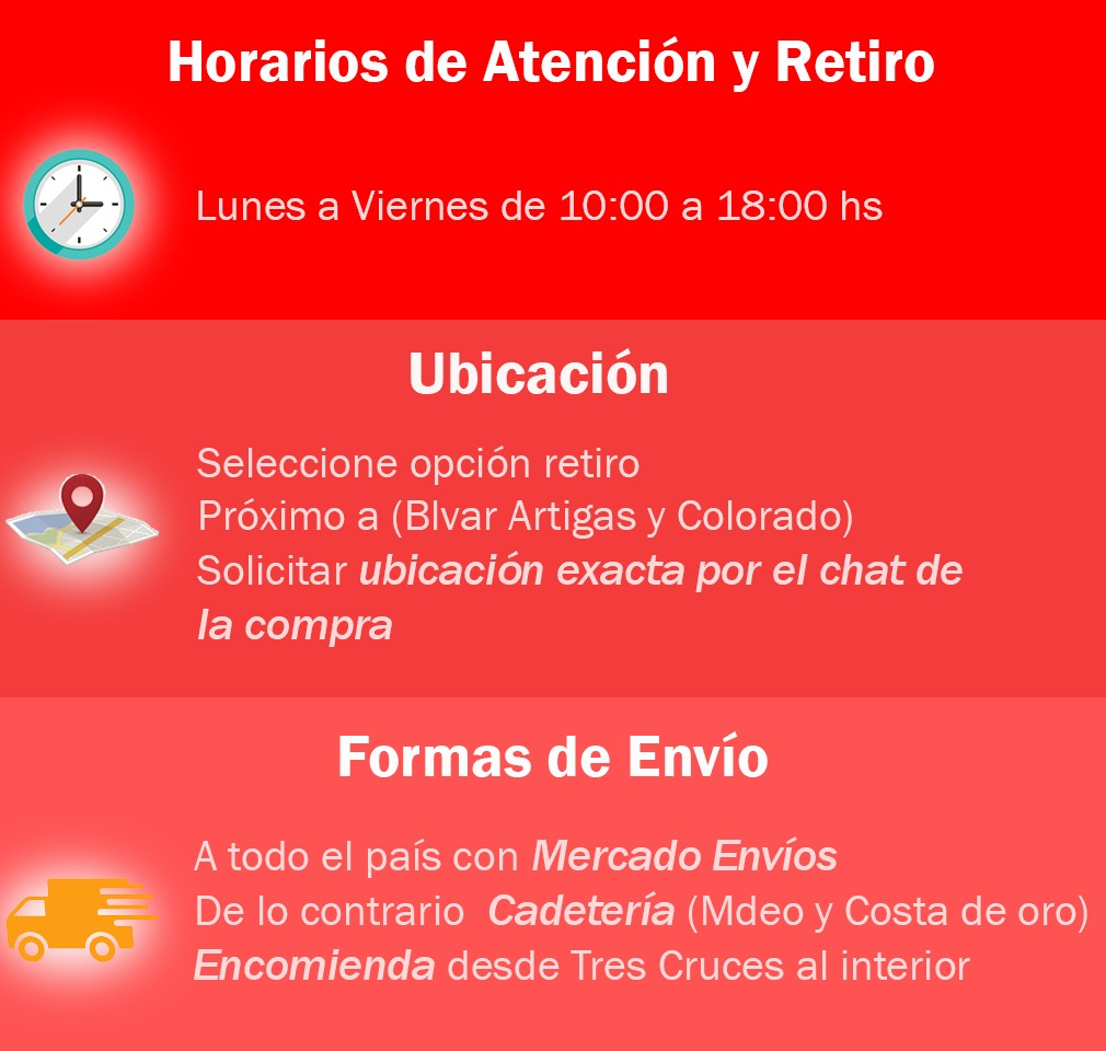 Usted puede retirar su compra por nuestro depósito ubicado en el barrio Jacinto Vera. A tres cuadras del canal 5 para que tenga una referencia aproximada de la ubicación.