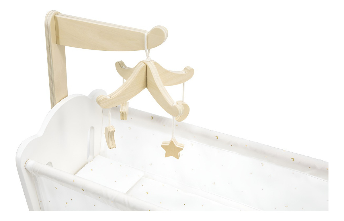 Con una suave almohada de algodón y una colcha con un adorable estampado de estrellas y lunas, esta cuna añade un toque de ternura a cualquier dormitorio de muñecas. Además, cuenta con un encantador carrusel de cuna que agrega un toque mágico a la hora de dormir.