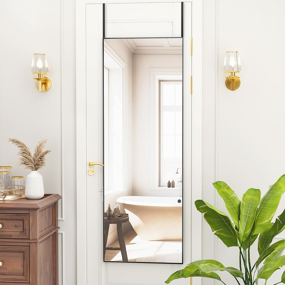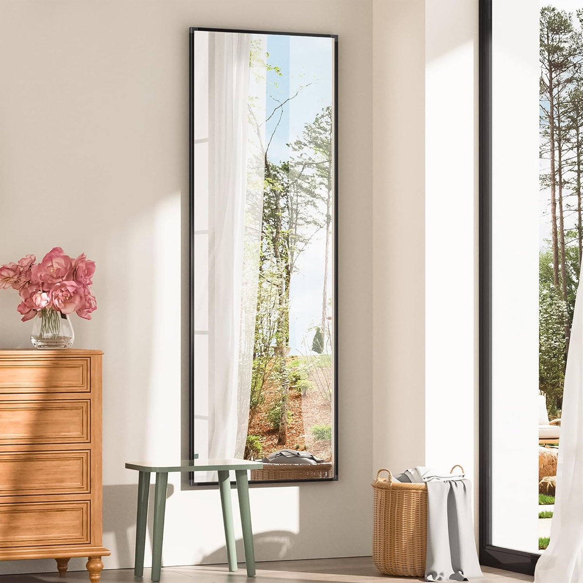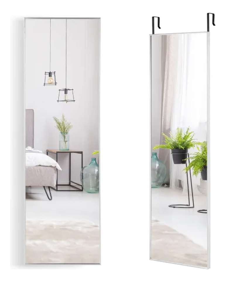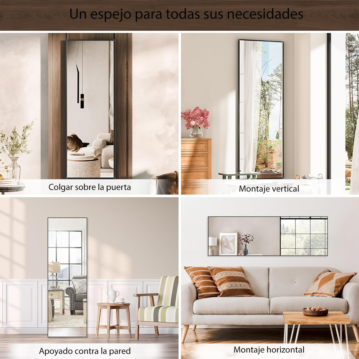Diseñado con un marco delgado de aleación de aluminio duradero, este espejo ofrece una vista clara y completa de tu reflejo. ¡Ideal para el dormitorio, pasillo o vestidor! Además, puedes usarlo de pie o colgarlo en la pared o puerta, según tu necesidad de espacio.