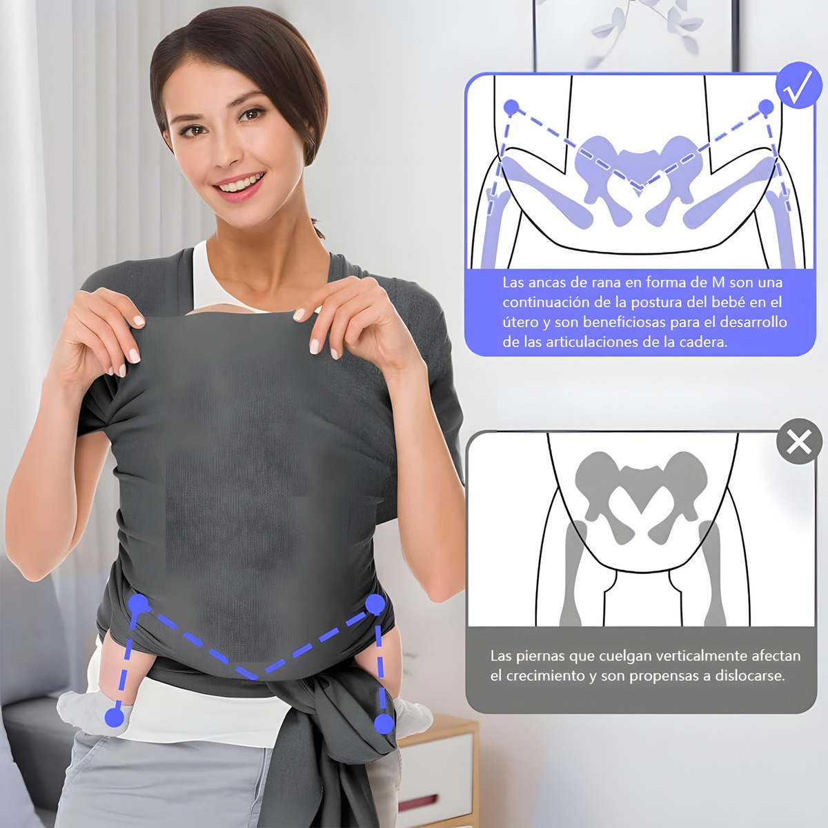 fular portabebé ergonómico, fular ajustable, portabebé de algodón, porteo seguro, desarrollo saludable bebé, manos libres, cobertura lactancia, fácil de usar.