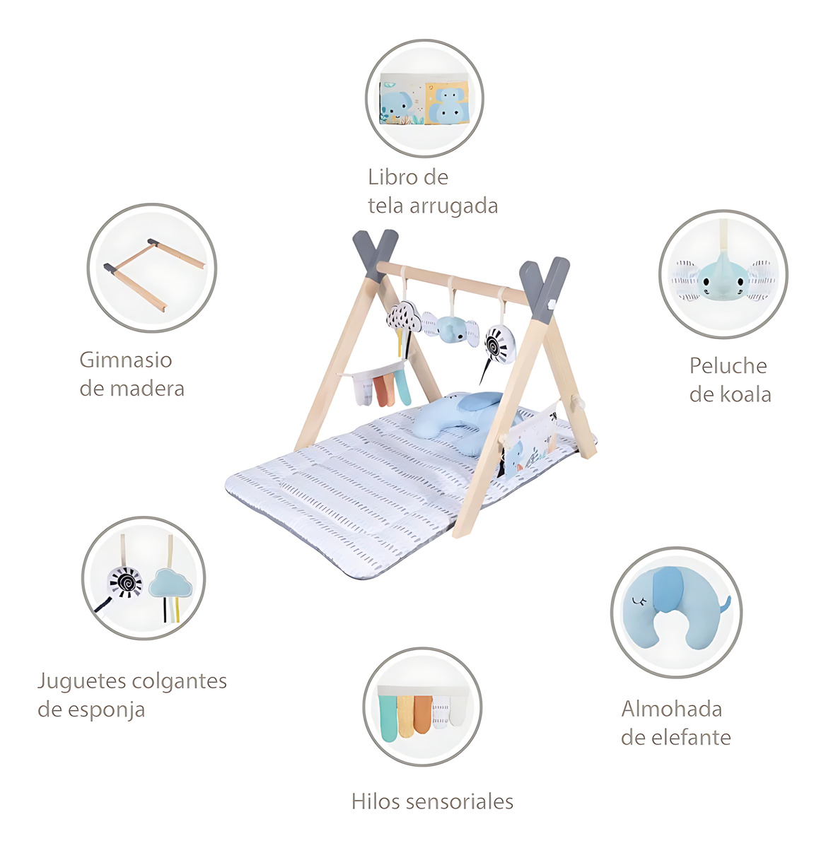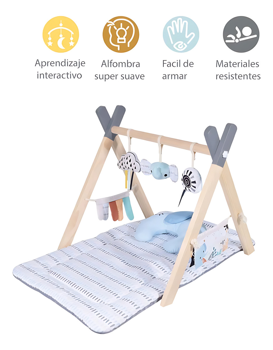 Gimnasio Madera Multifuncion Alfombra Didactica Bebe