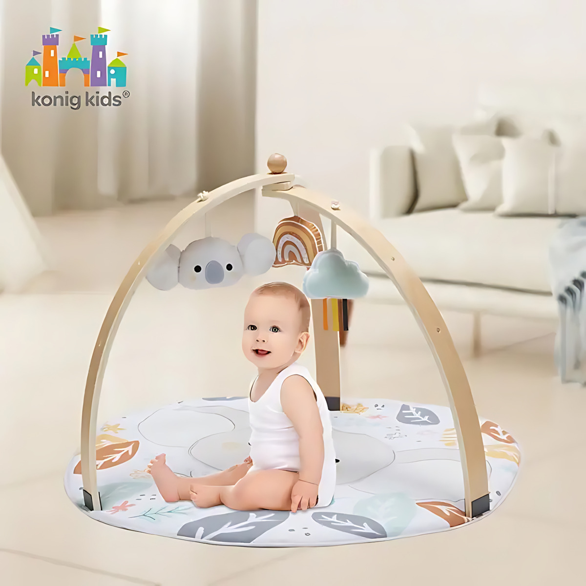 Gimnasio Alfombra Didáctica Bebé Estilo Nórdico Madera Arcos + Juguetes