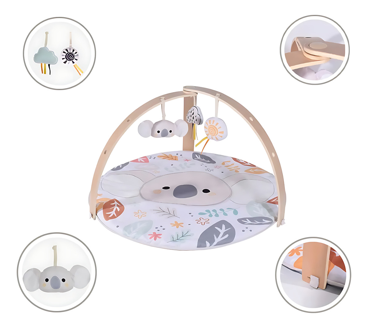 La alfombra suave con cojín de peluche en forma de koala asegura que tu bebé esté cómodo mientras explora los juguetes colgantes extraíbles. Estos juguetes no solo estimulan sus sentidos, sino que también fomentan su motricidad fina.