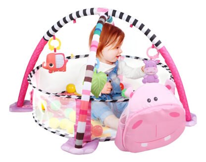 Convierte el tiempo de juego en una experiencia sensorial. Almacena hasta 30 coloridas pelotas dentro de la cabeza del hipopótamo, agregando una dimensión adicional a la diversión. Este gimnasio es perfecto para niños ocupados y curiosos, ofreciendo un espacio que evoluciona con su crecimiento y desarrollo.