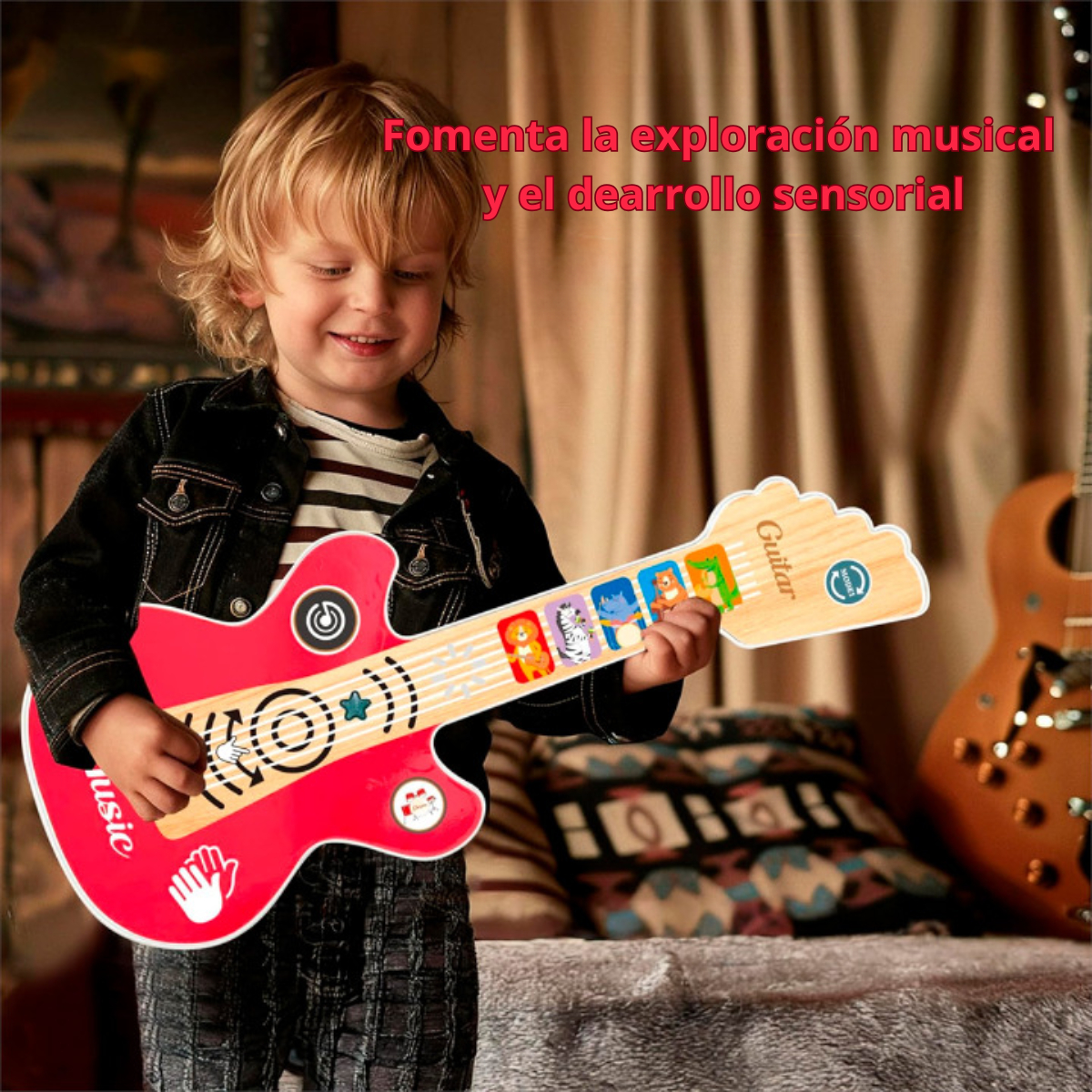 ¿Querés que tu hijo o hija descubra el amor por la música desde pequeño? Esta guitarra de juguete con sonidos y rimas infantiles es la elección perfecta para incentivar la creatividad y el aprendizaje musical de forma divertida.
