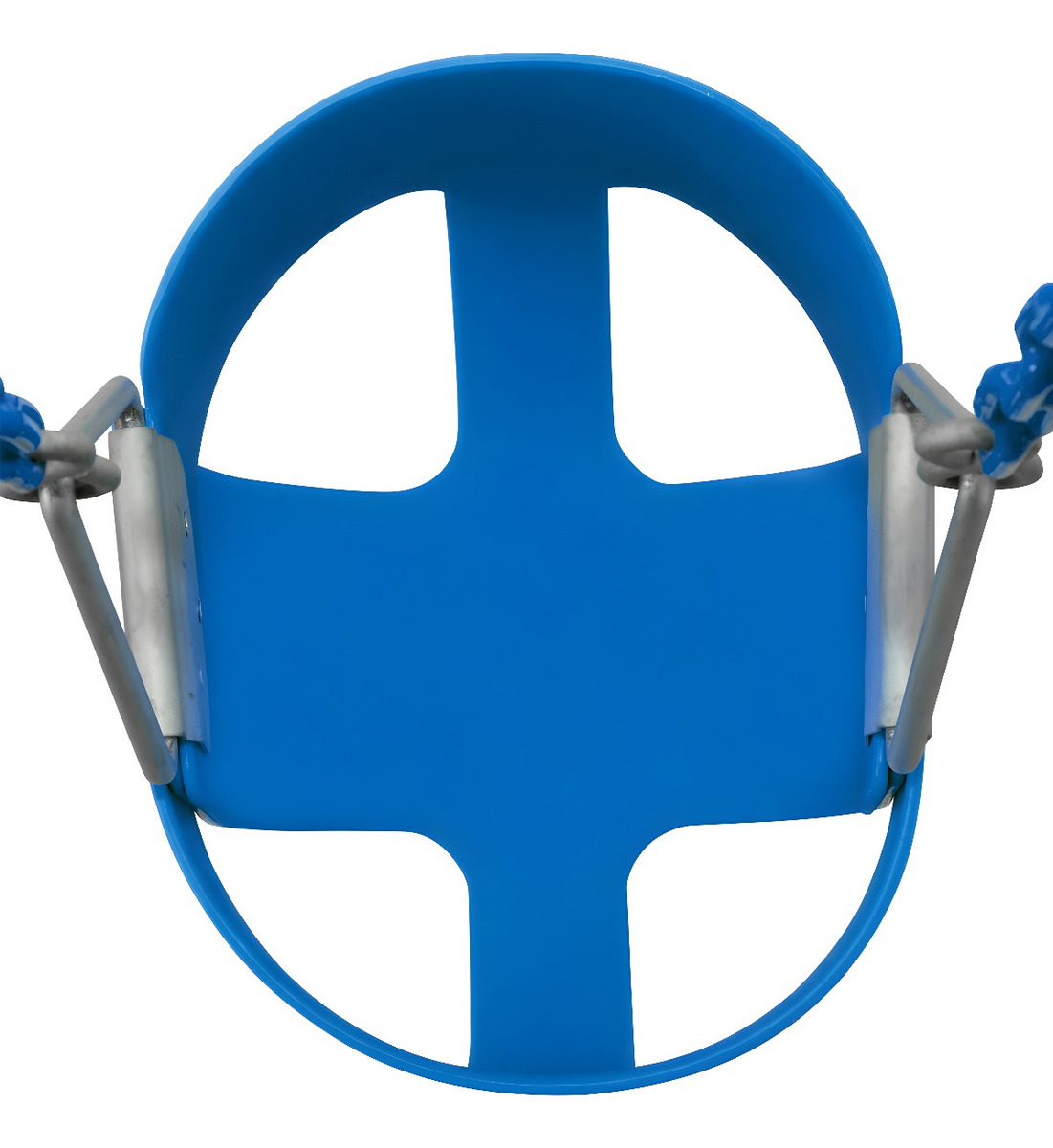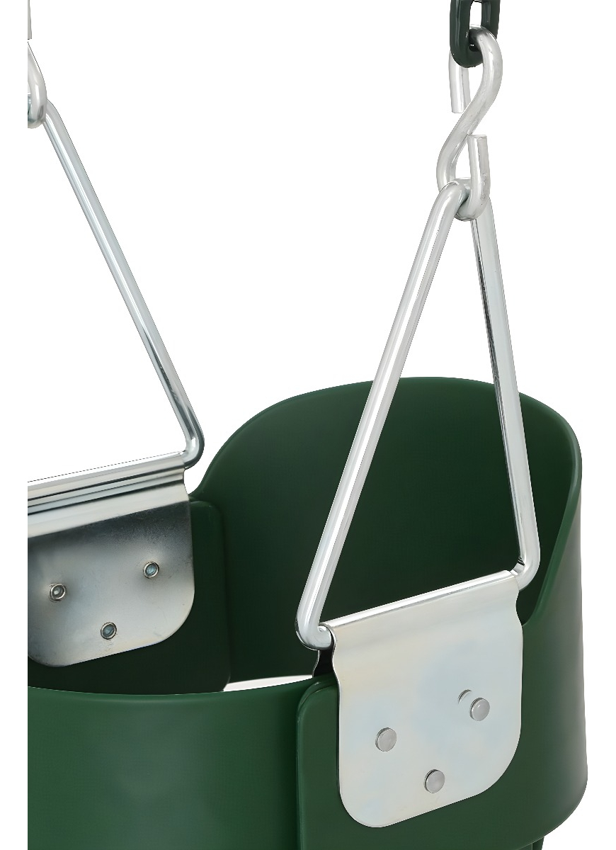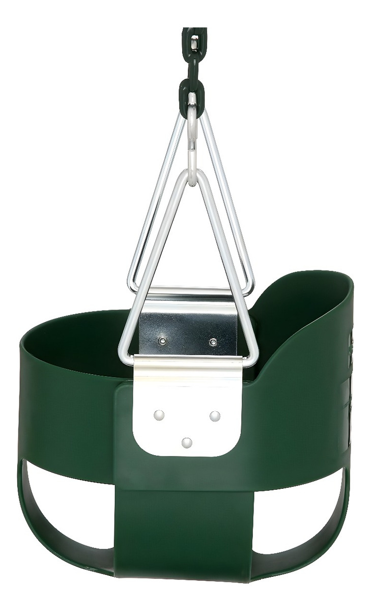 Cadenas envueltas en plástico para evitar pellizcos y diseño con respaldo alto para prevenir giros hacia atrás.