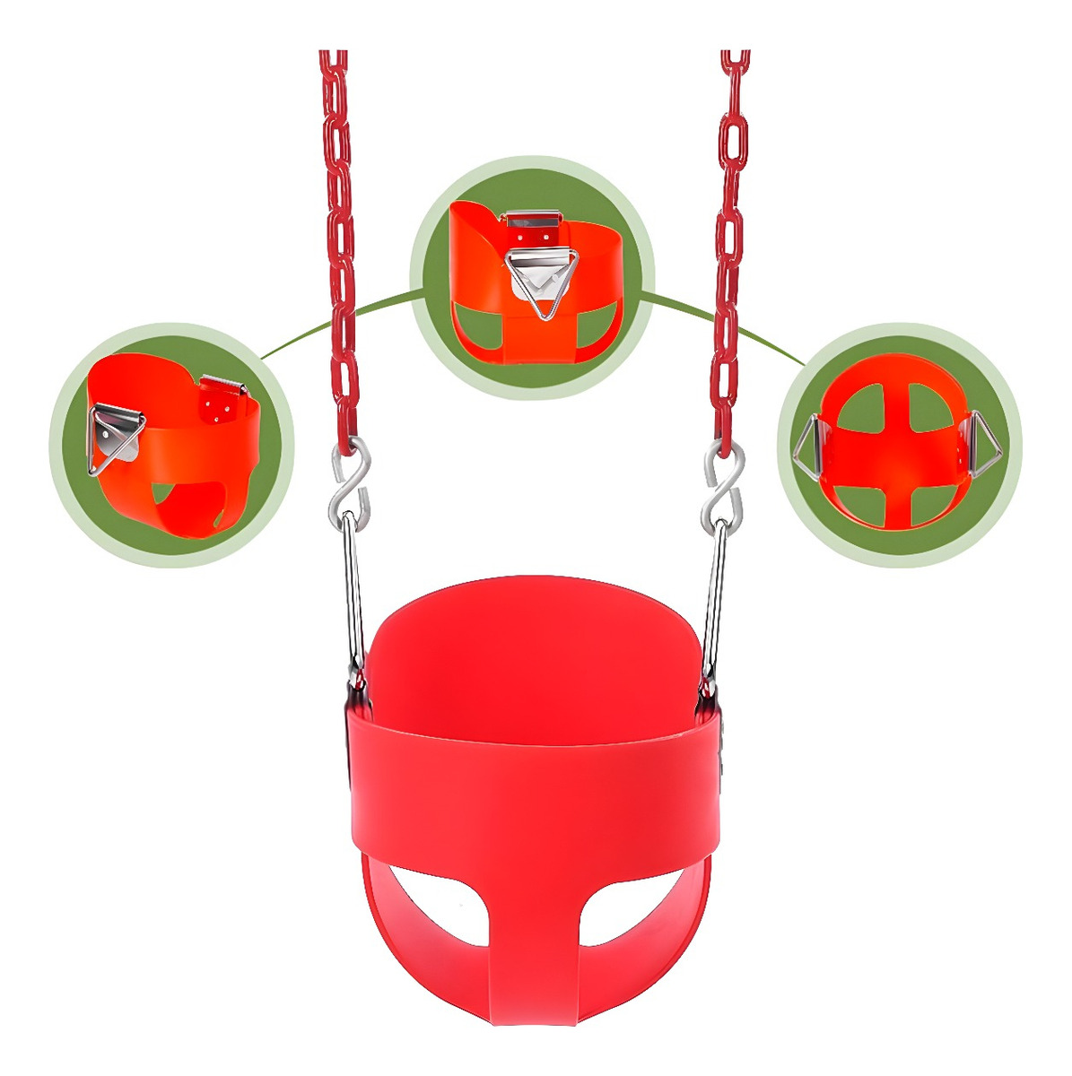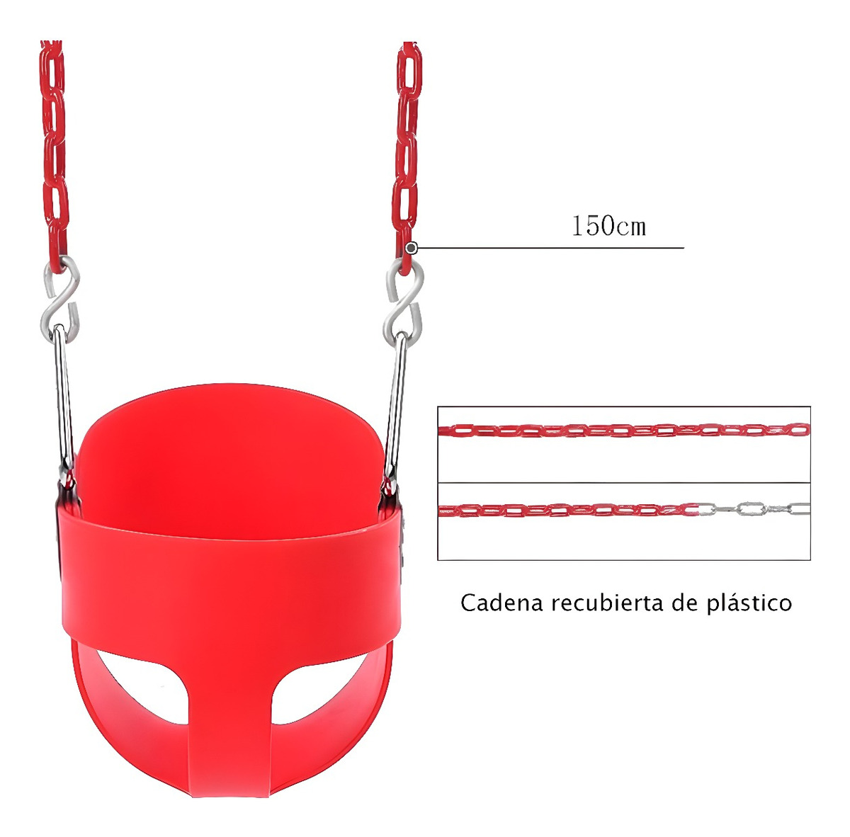 Nuestra hamaca está fabricada con EVA, un material duradero y resistente que soporta hasta 20kg. La cadena está completamente envuelta en plástico para evitar pellizcos en los dedos y el cabello. Además, su diseño incluye un respaldo alto que garantiza la seguridad de los niños pequeños, evitando que se giren hacia atrás. Con un asiento suave y cómodo, tu bebé podrá disfrutar de horas de diversión sin preocupaciones.