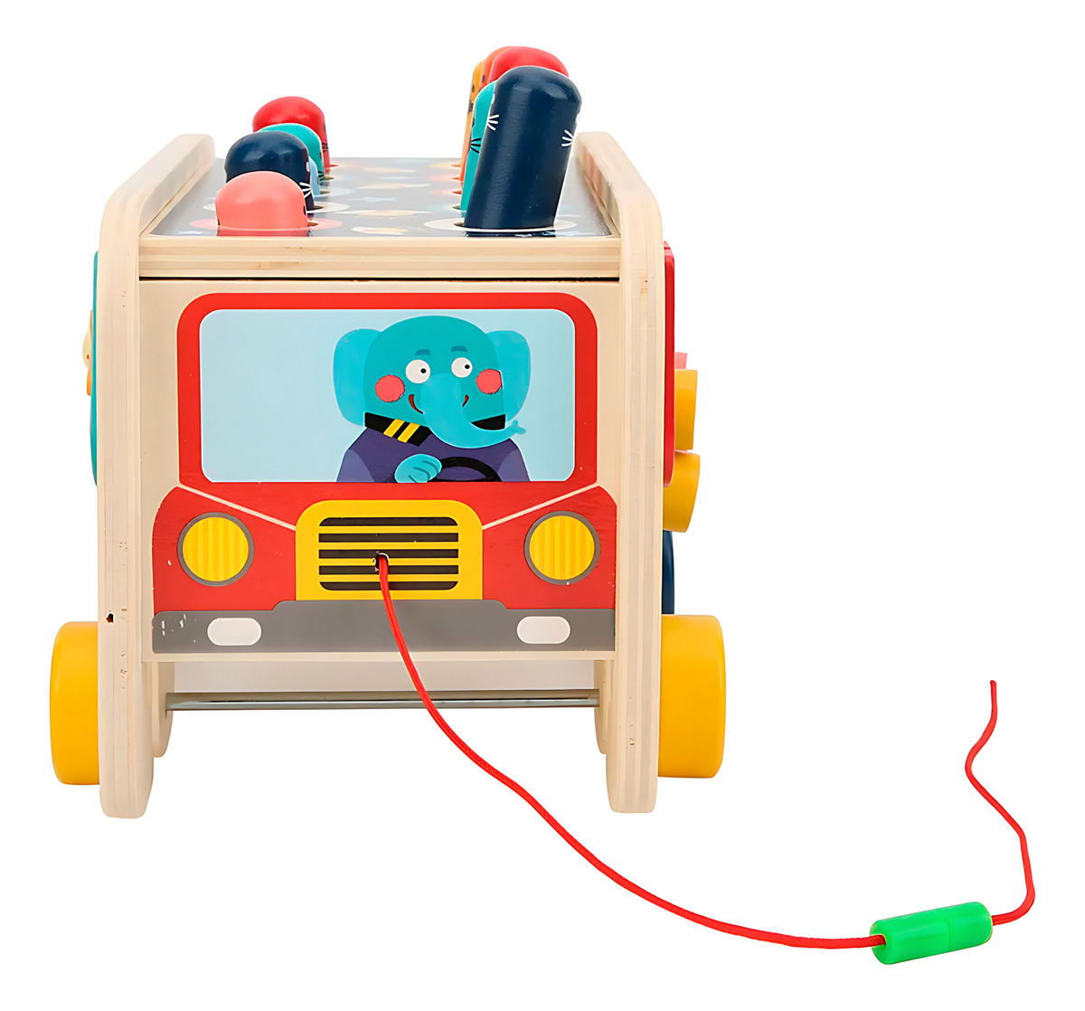 Diseño de elefante con cuerda para arrastre, ideal para desarrollar equilibrio y motricidad.