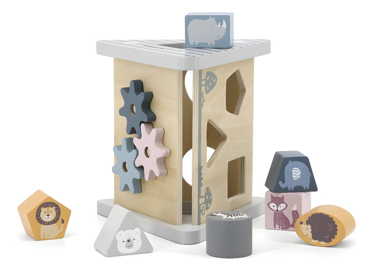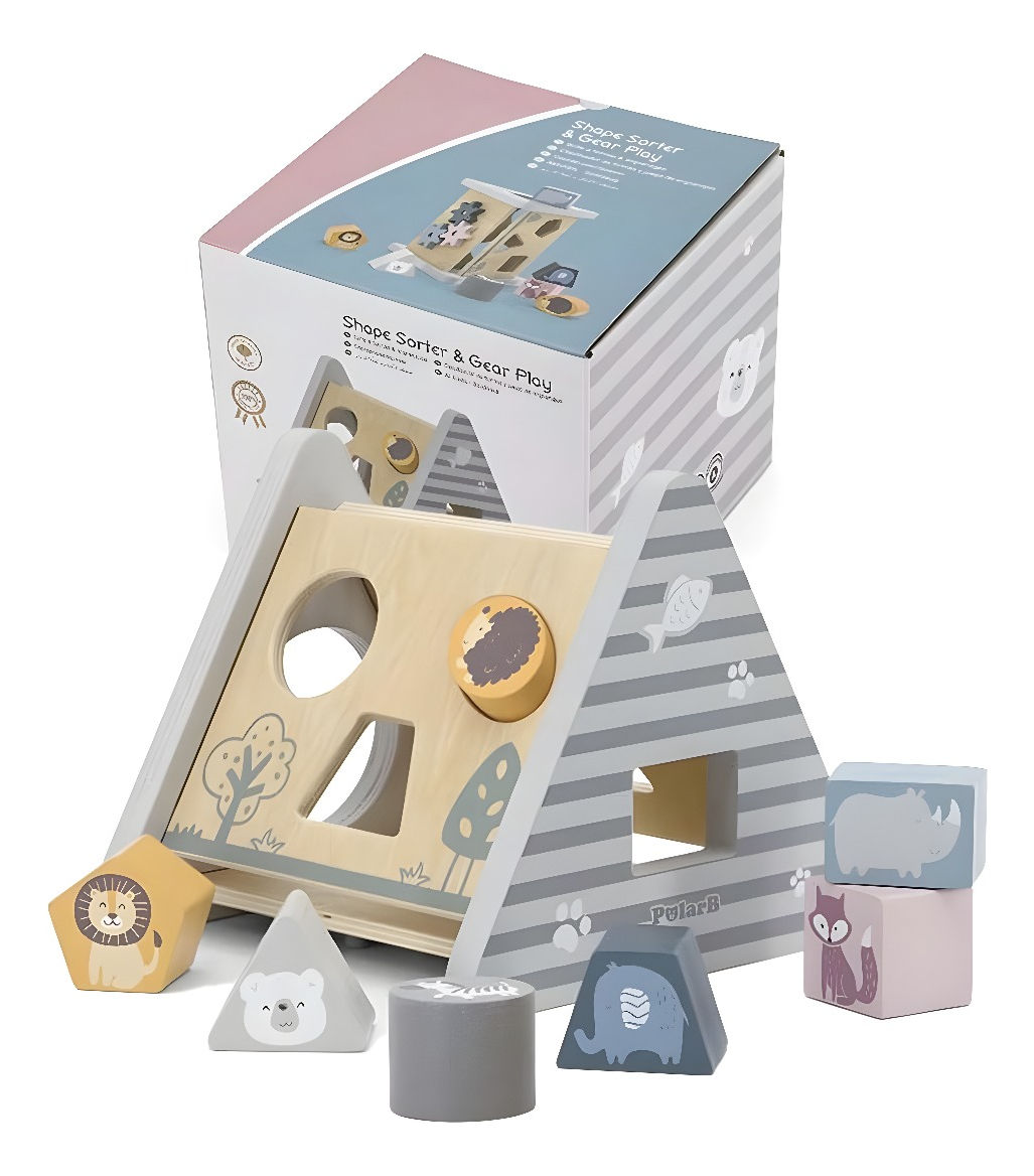 Sumérgete en la creatividad con piezas de madera diseñadas para encastrar en el triangulo, proporcionando horas de juego libre y la oportunidad de construir historias y mundos imaginarios. El triangulo no solo es un lienzo para la diversión, sino que también cuenta con ruedas de engranaje en uno de sus lados, una característica atractiva para los pequeños exploradores.