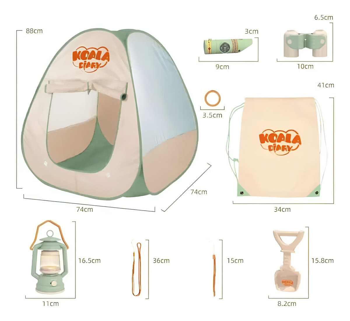 Este increíble kit incluye una carpa espaciosa de 88x74x74 cm, perfecta para simular auténticas experiencias de campamento. Además, viene con 7 accesorios esenciales como una lámpara para iluminar las noches de juego, binoculares para observar la naturaleza, una brújula para explorar nuevos horizontes, y más. Todo lo necesario para que los niños se sumerjan en una aventura completa.