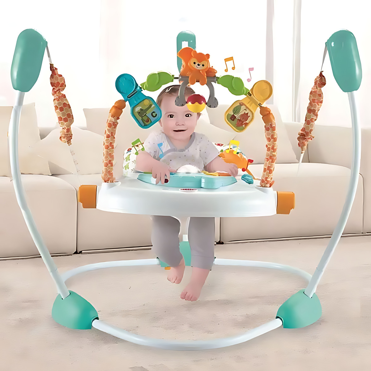 ¡No esperes más! Dale a tu bebé la oportunidad de disfrutar y aprender al mismo tiempo con este Jumper de Piso con Luz y Sonido. Ideal para fortalecer su desarrollo en un entorno seguro y entretenido. ¡Haz tu compra ahora y asegura el bienestar y la diversión de tu bebé!