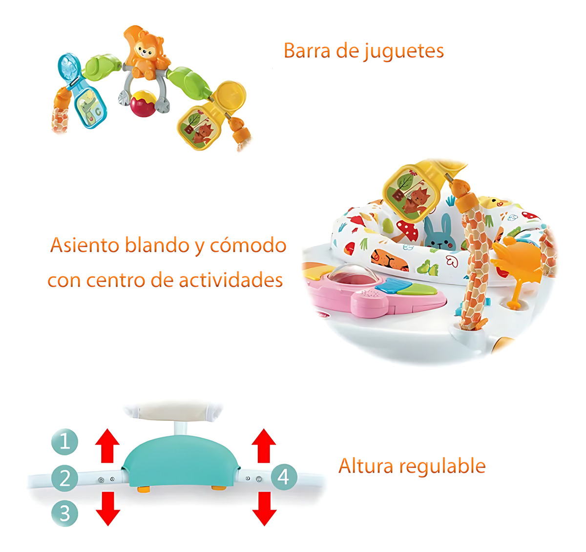 ¡Descubre el jumper ideal para tu bebé! Este Jumper de Piso con Luz y Sonido no solo es un centro de entretenimiento, sino también una herramienta clave para el desarrollo físico y sensorial de tu pequeño.