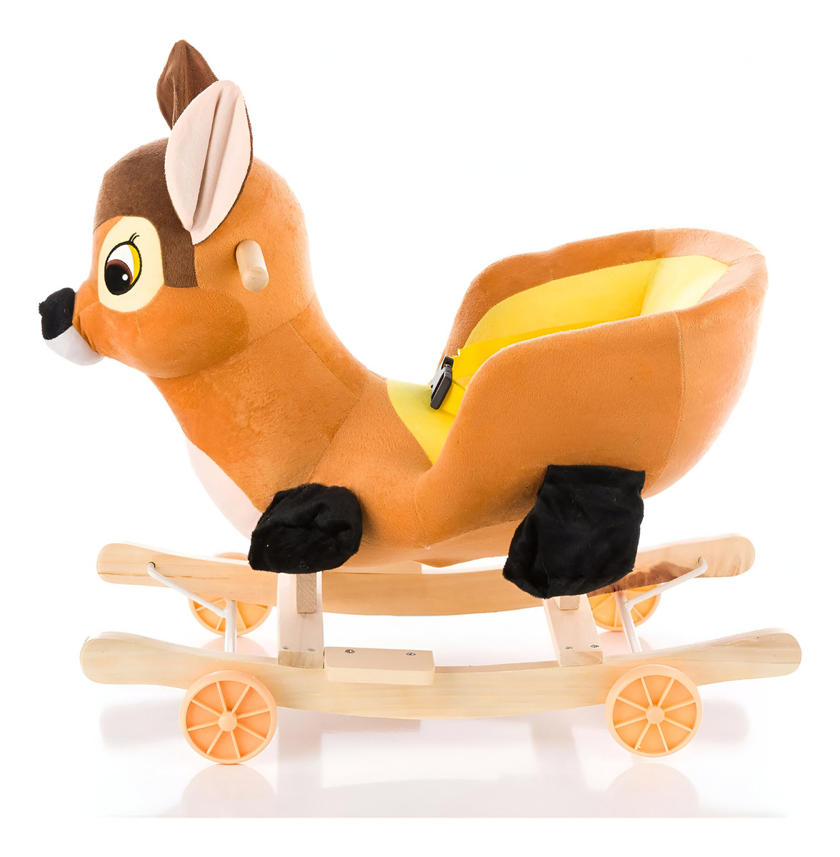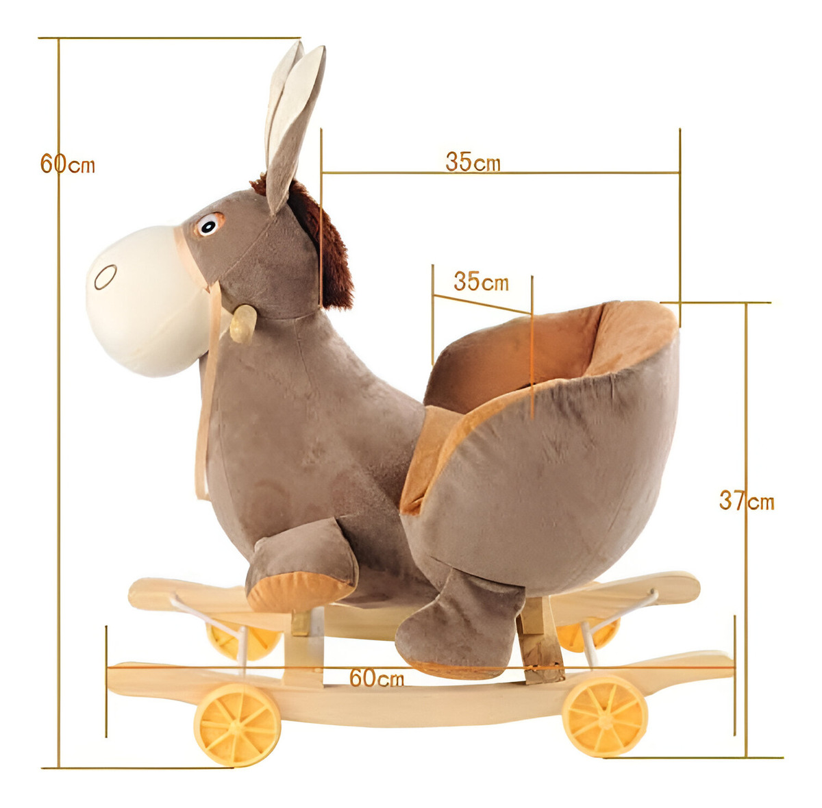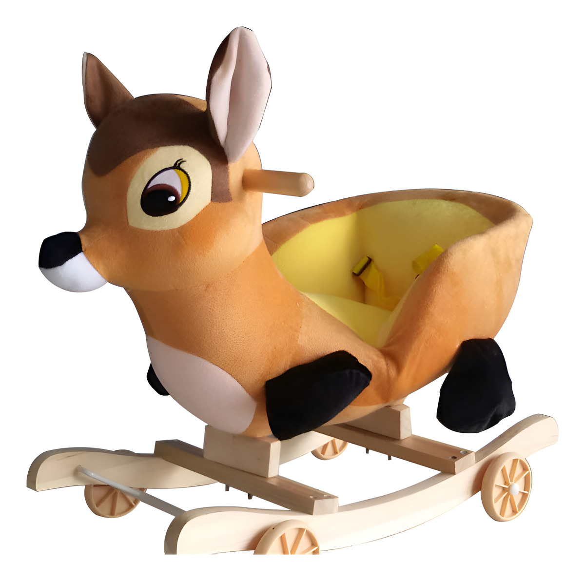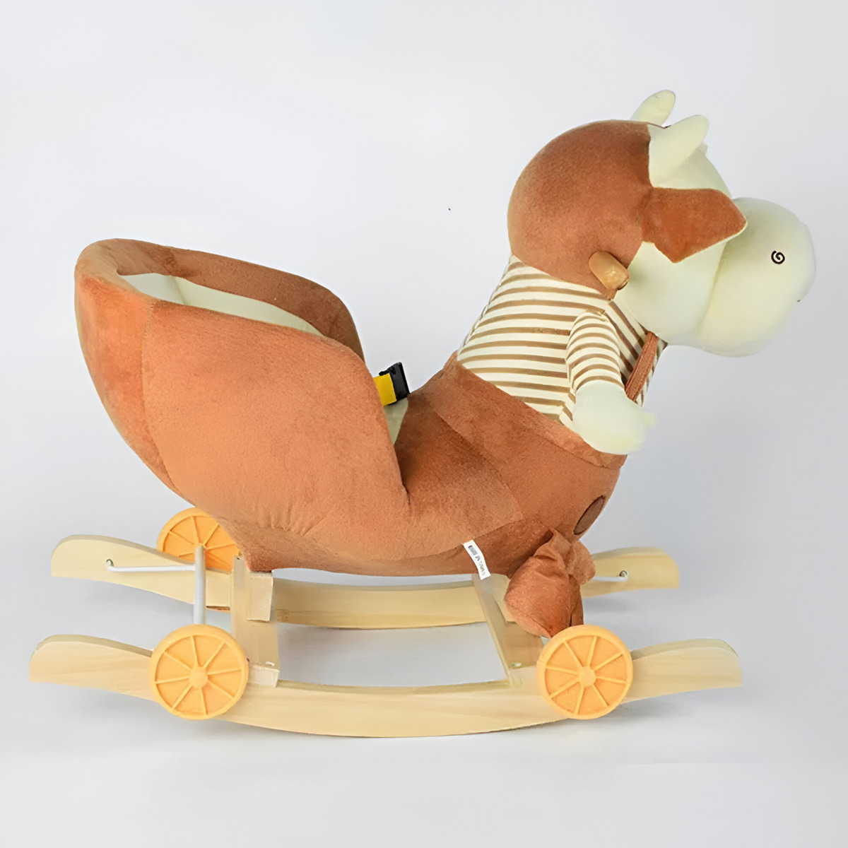 Equipado con un cuerpo de peluche suave, un manillar ergonómico y cinturones de seguridad, este juguete asegura que tu hijo disfrute de un balanceo suave y seguro.