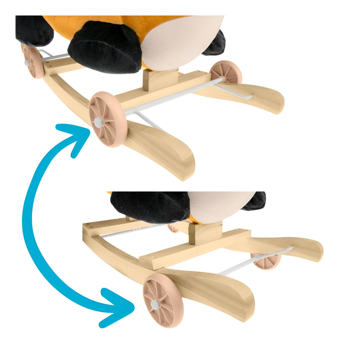 Esta mecedora balancín para niños no es solo un juguete, es una experiencia. Con una plataforma de balanceo suave y 4 ruedas plegables, puedes transformarla fácilmente de un balancín clásico a un cochecito móvil. Además, su cuerpo de peluche suave y su manillar de fácil agarre hacen que cada aventura sea cómoda y emocionante.
