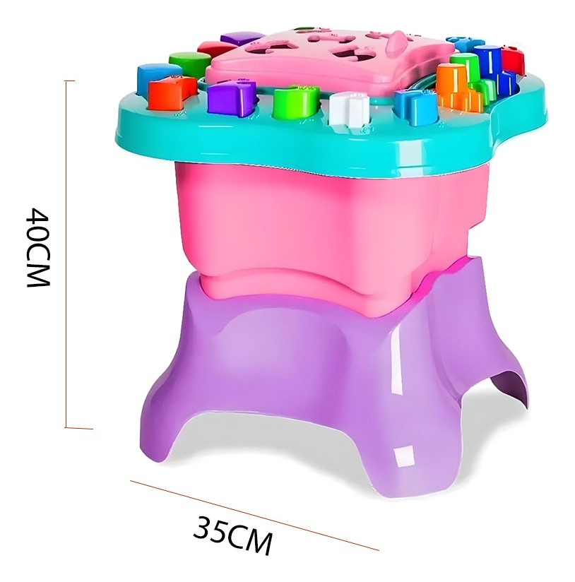 Imagina a tu bebé explorando un universo lleno de descubrimientos. Con la Mesa de Actividades, no solo estás invirtiendo en su diversión, sino también en el desarrollo de habilidades clave. La tapa que se abre y cierra para recoger las piezas agrega una dimensión práctica y facilita la organización después del juego.