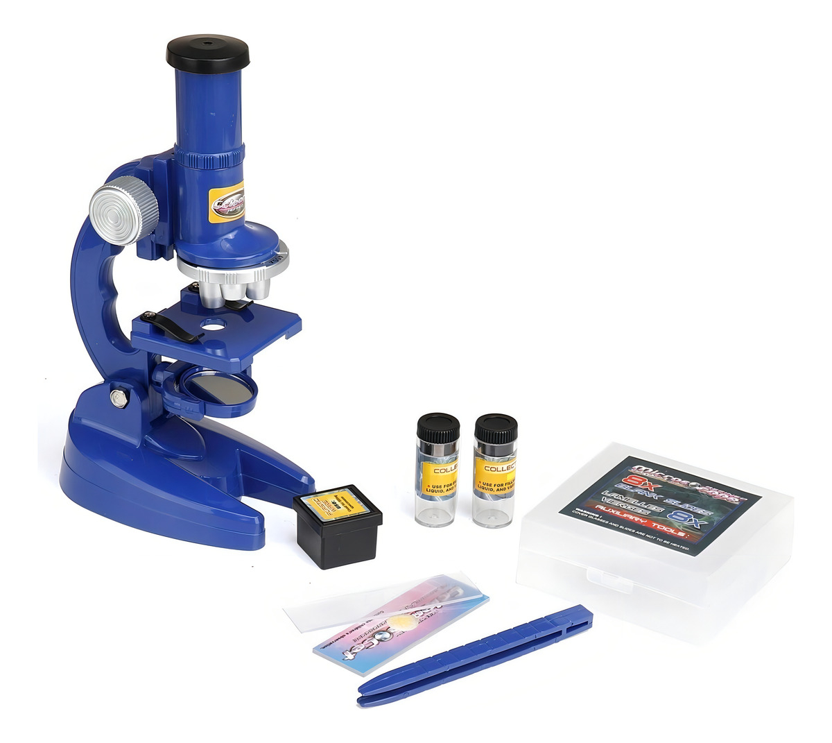 Microscopio Para Estudiantes Principiantes Con Accesorios Color Azul