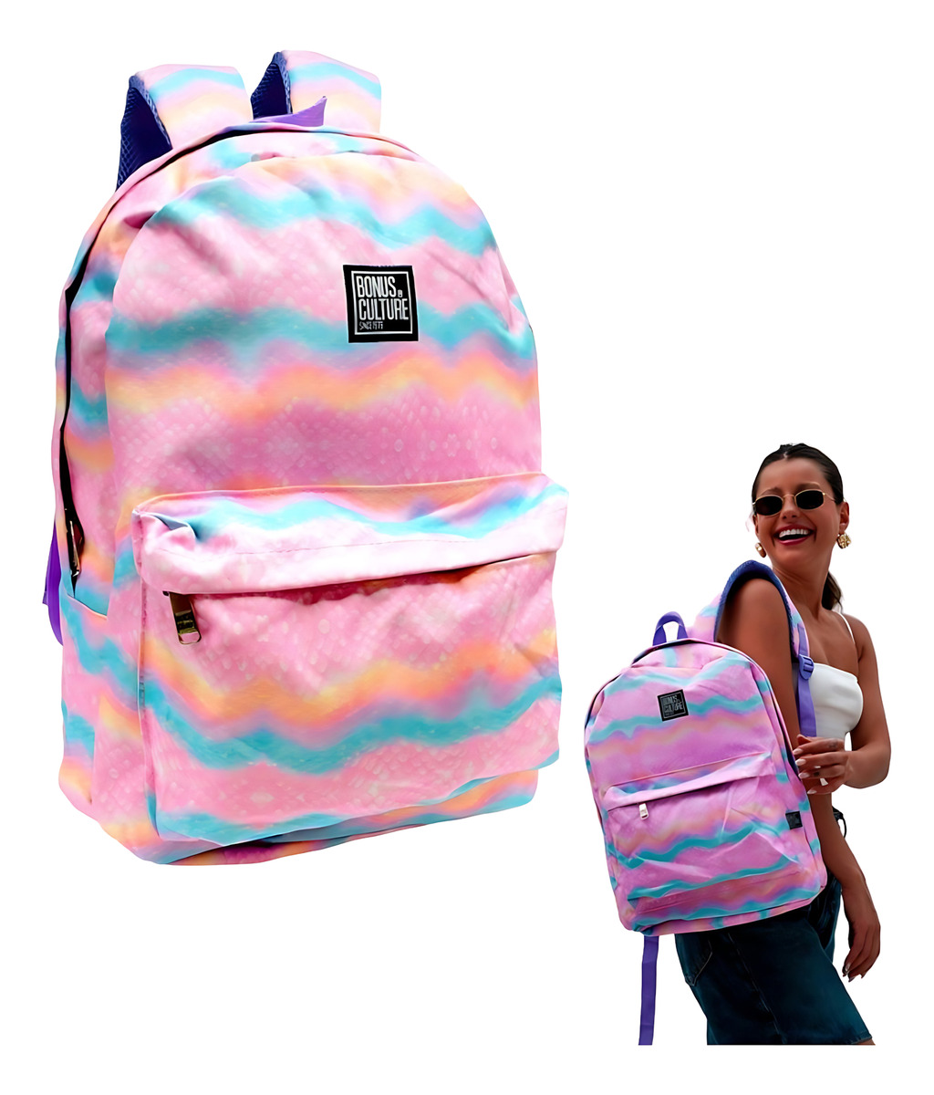 ¿Buscás una mochila resistente, espaciosa y con un diseño único? La Mochila Bonus Culture Pastel Degradé combina estilo y funcionalidad para acompañarte en el día a día.