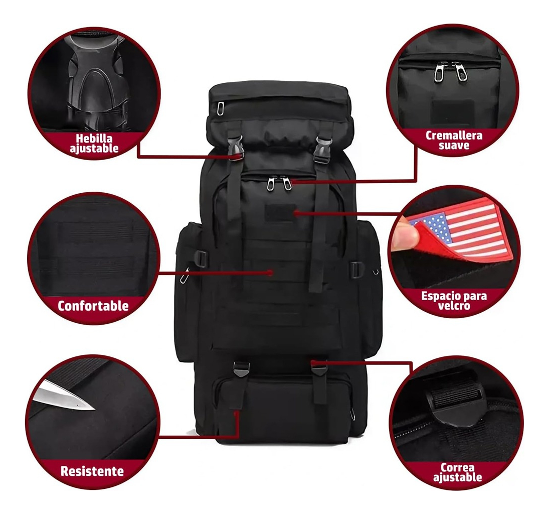 ¡Prepárate para conquistar la naturaleza con nuestra Mochila de Camping 65L! Diseñada para los aventureros más intrépidos, esta mochila táctica militar es tu mejor aliada en cualquier situación.
