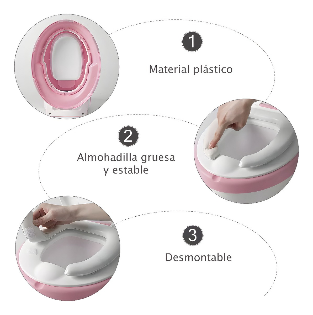 La base antideslizante de esta pelela proporciona estabilidad y seguridad mientras tus hijos están en el baño. Con una capacidad de soportar hasta 30 kg, es ideal para niños de 6 meses a 8 años, asegurando un entrenamiento seguro y sin preocupaciones.