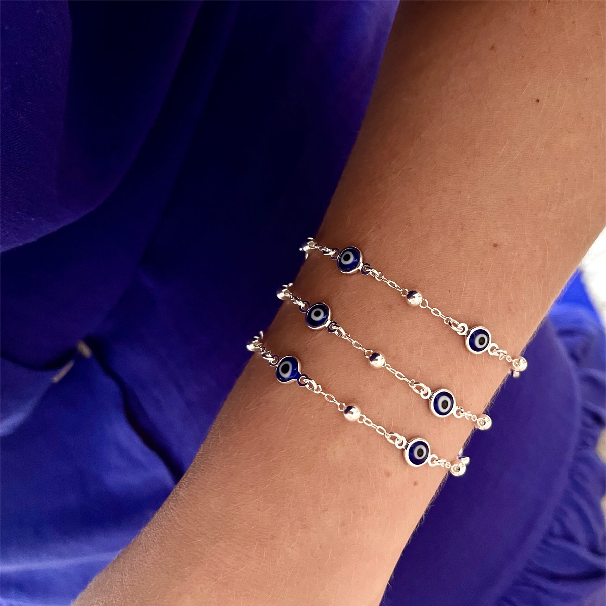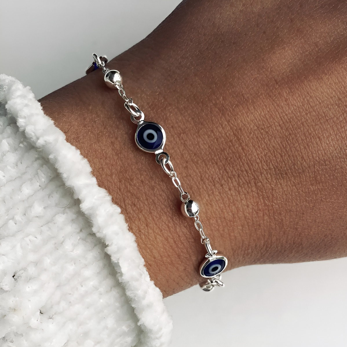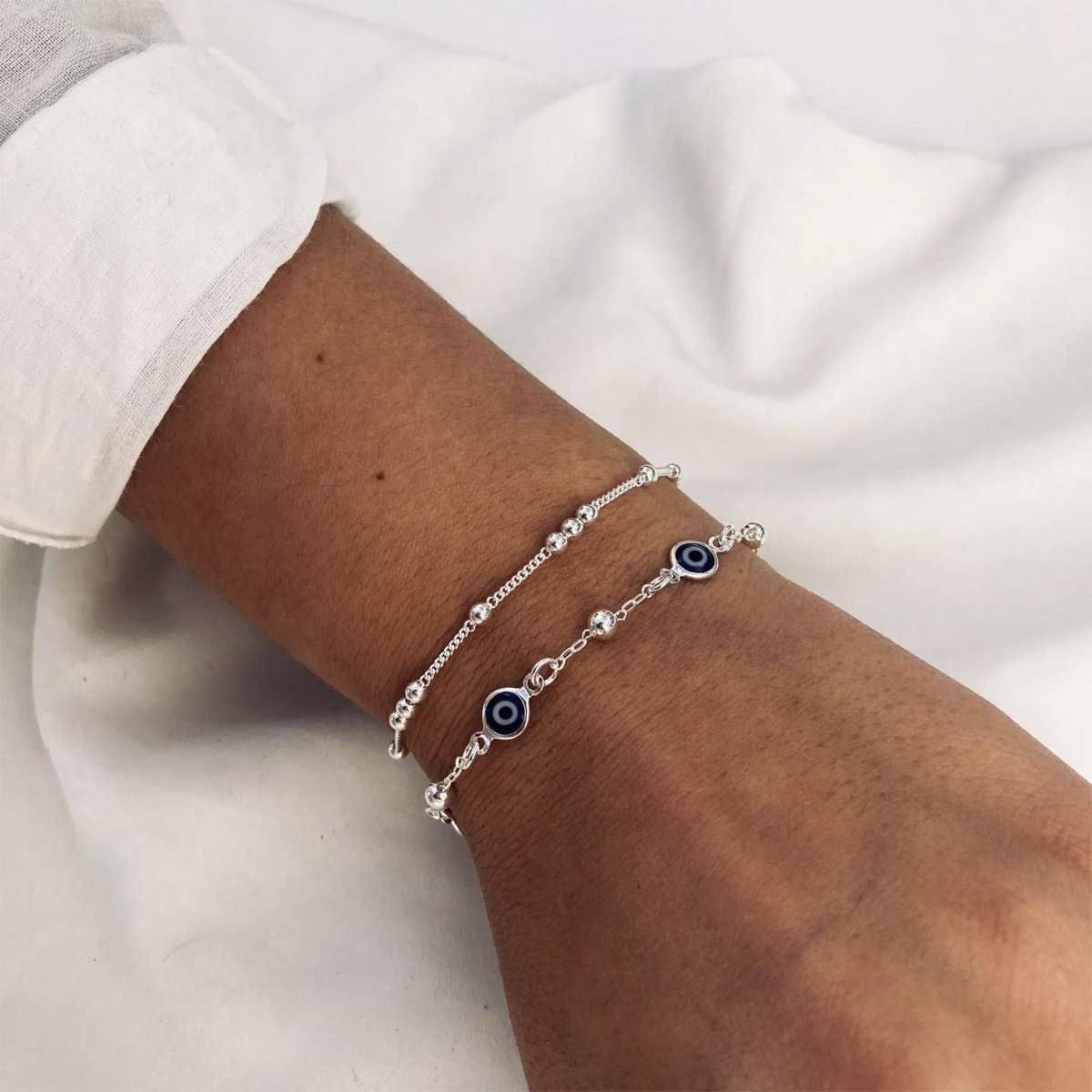 Protección y Estilo: Pulsera de Plata 925 Ojo Turco con Esferas – ¡Encanto y Elegancia!