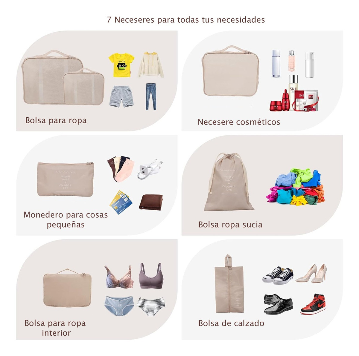 Set de 7 Neceseres Organizadores de Valija – ¡Optimiza Tu Equipaje con Estilo y Eficiencia!