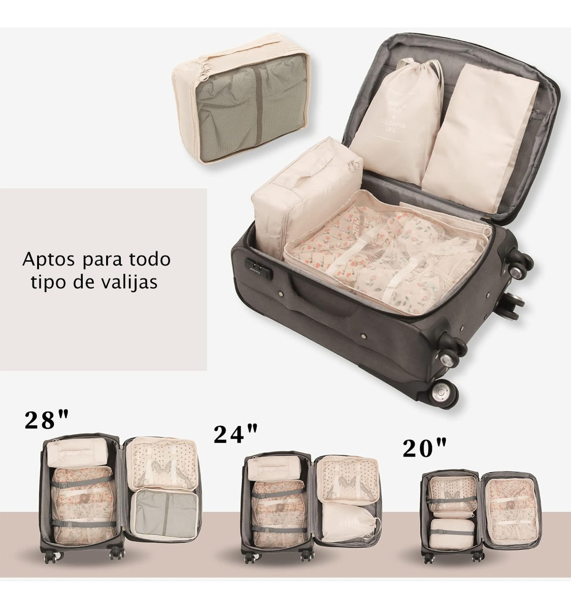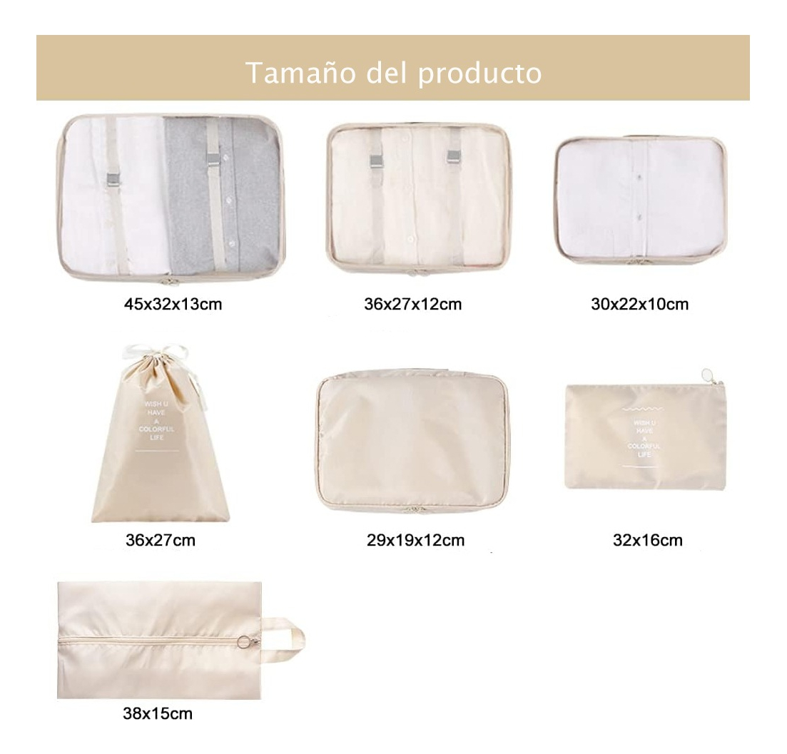 ¡Optimiza tu equipaje y viaja con estilo! Compra ahora el Set de 7 Neceseres Organizadores de Valija y disfruta de un viaje organizado y sin estrés. ¡Haz tu pedido hoy mismo y lleva la eficiencia y el orden a tus viajes!
