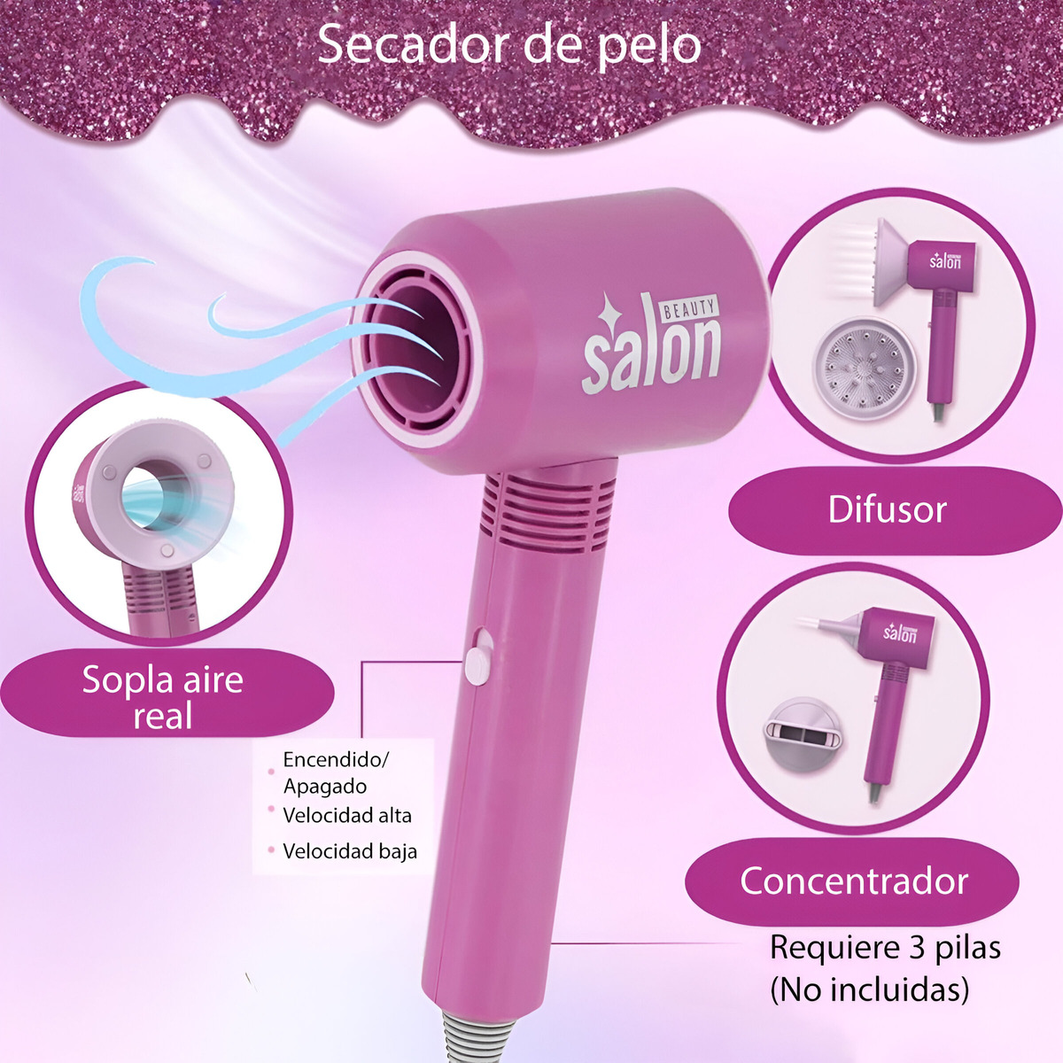 et de Belleza Peluquería para Niños – Juego Didáctico con Secador Sopla Aire Real!