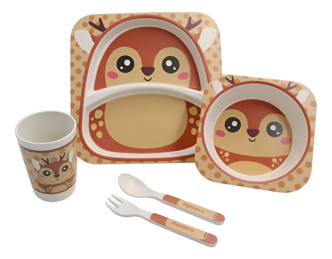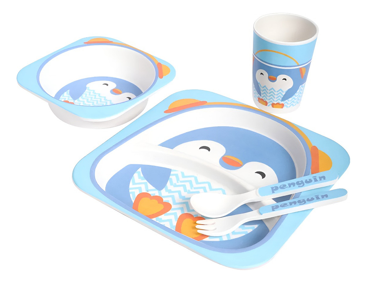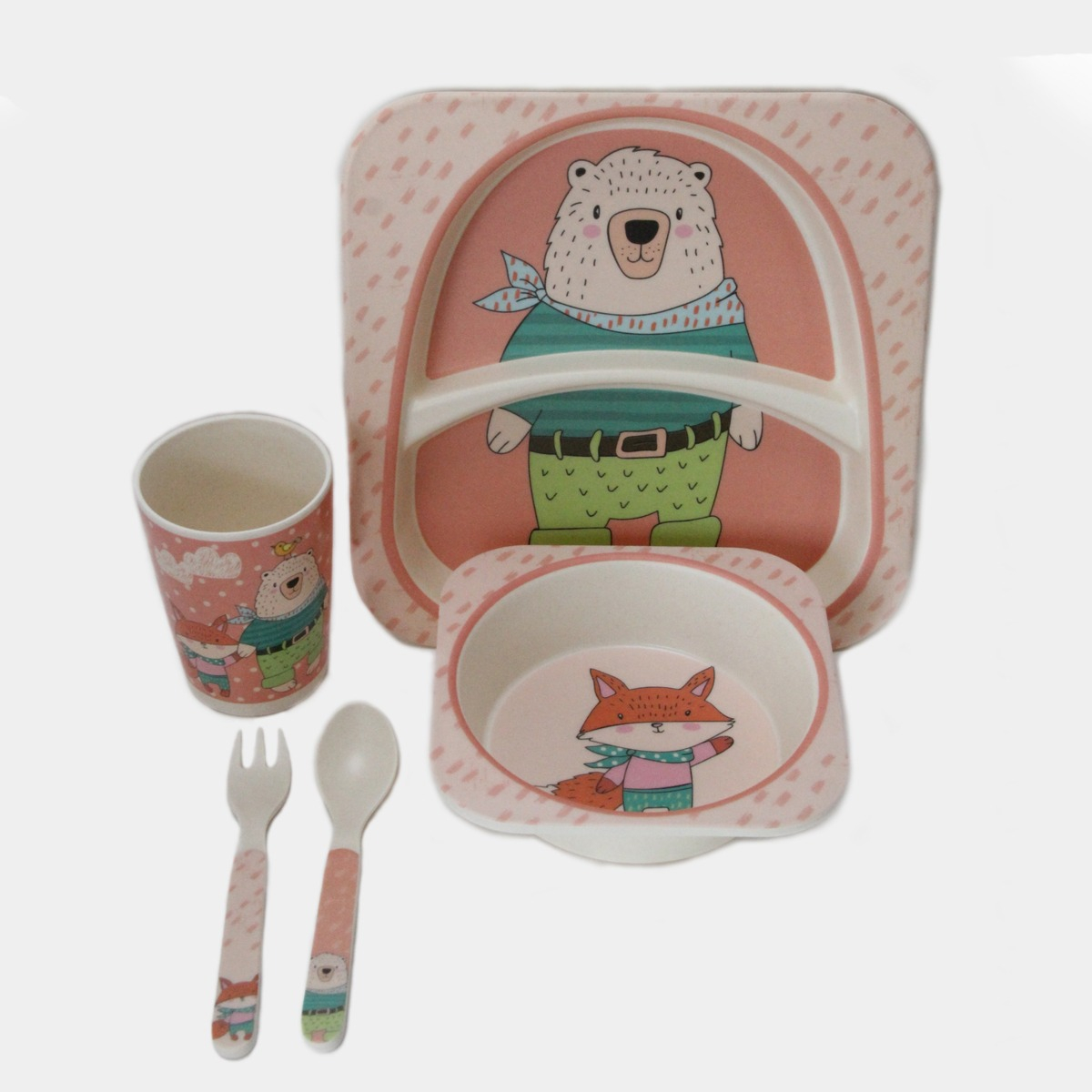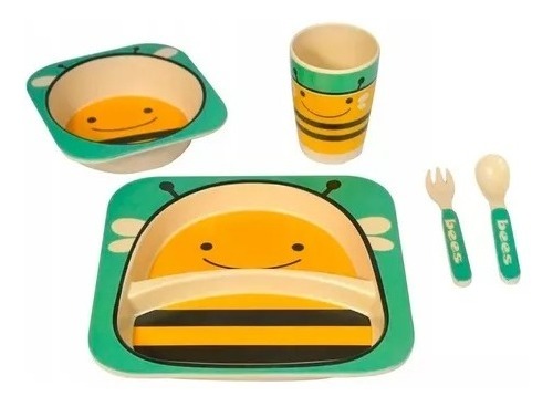 Set De Platos, Vaso Y Cubiertos Infantil Bambu X 5 Unidades