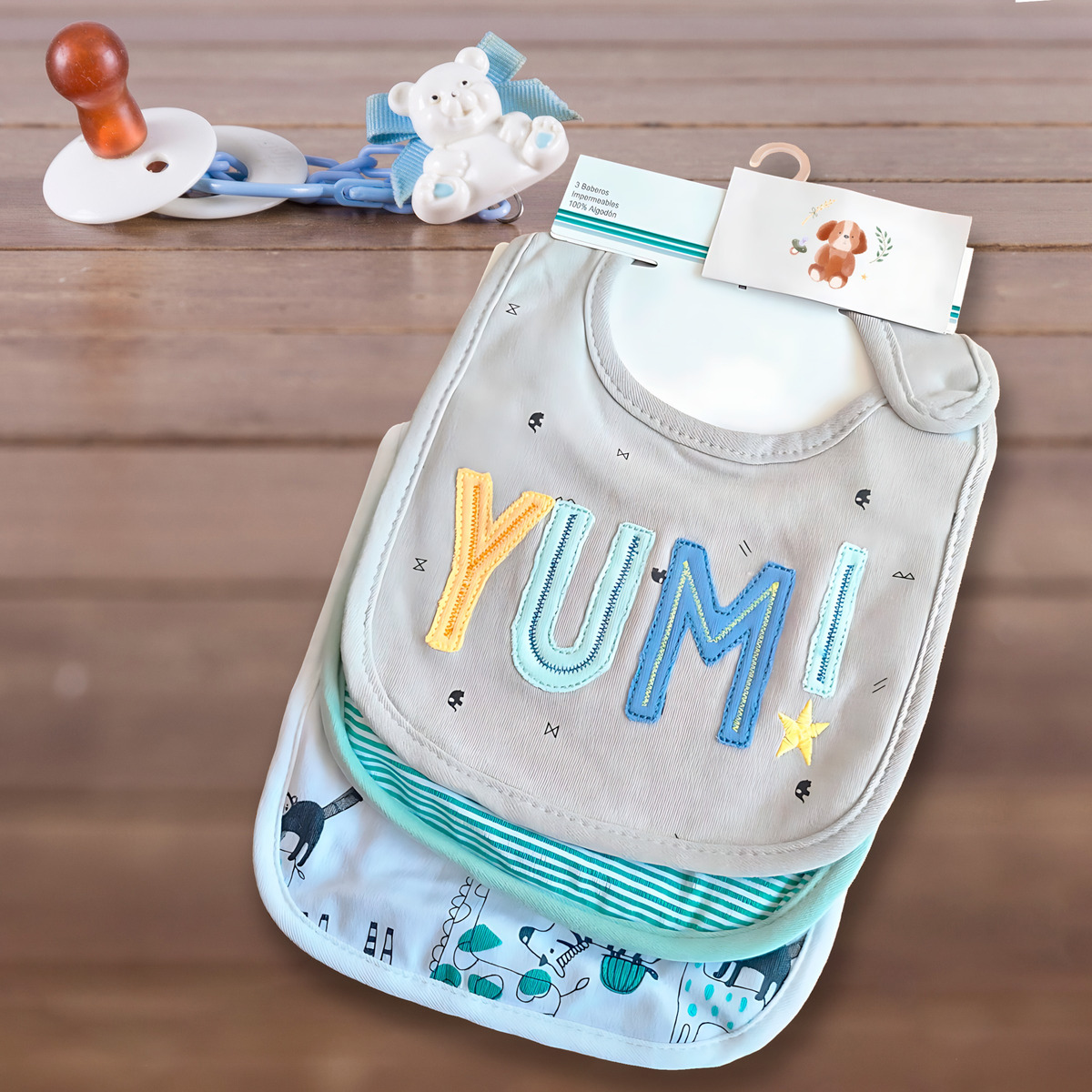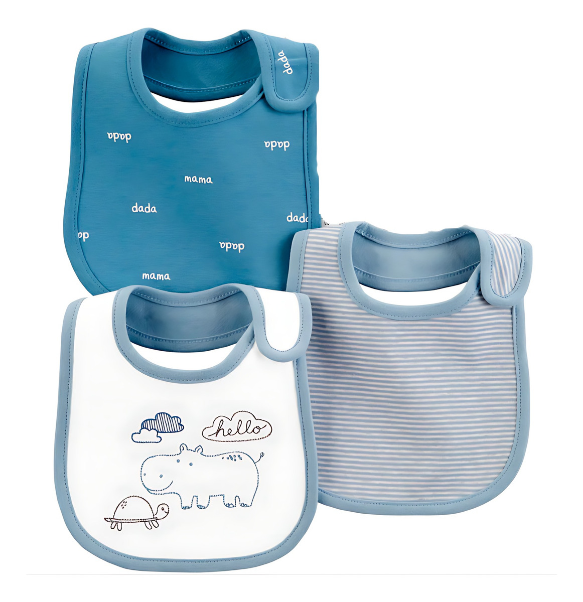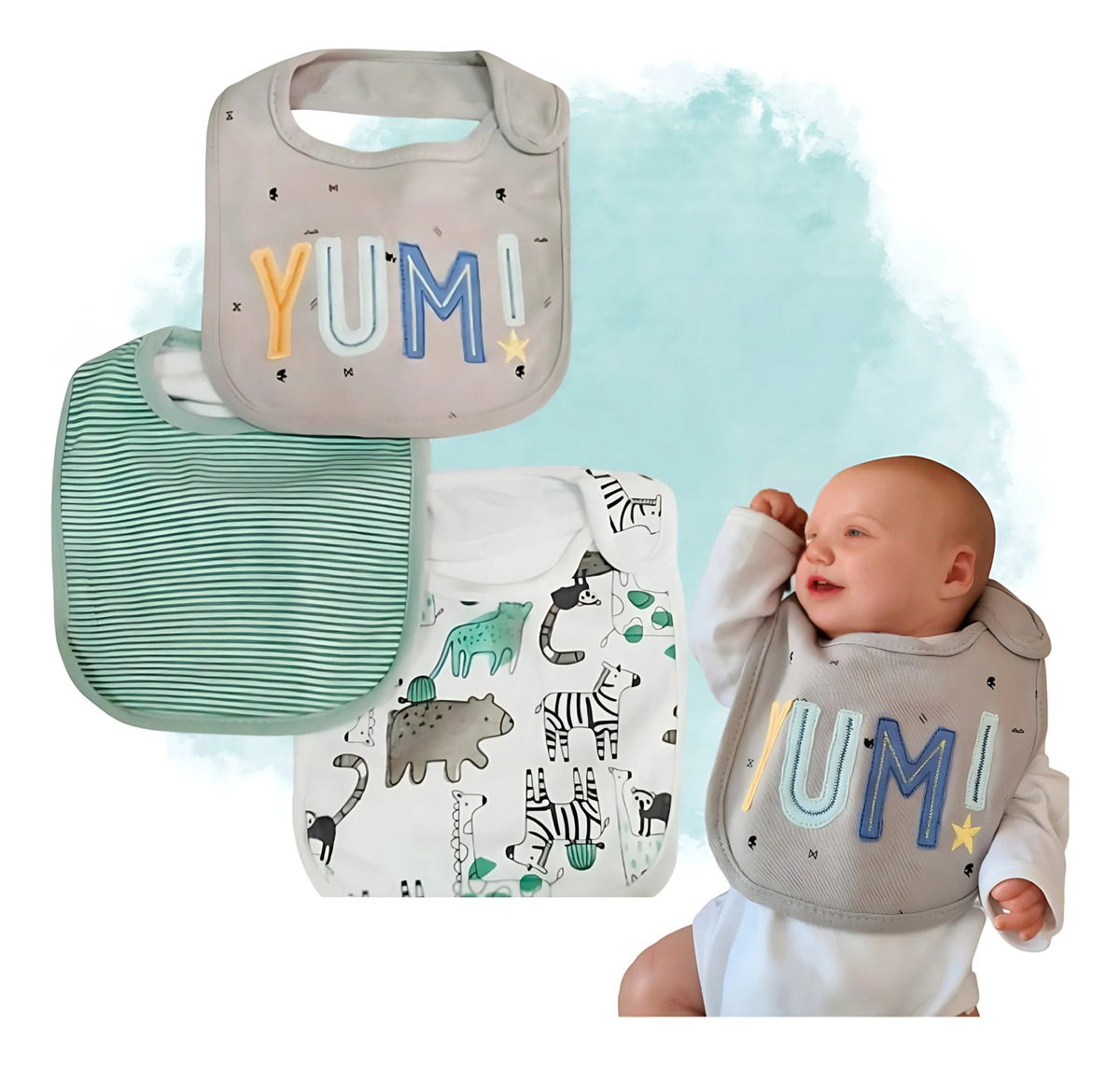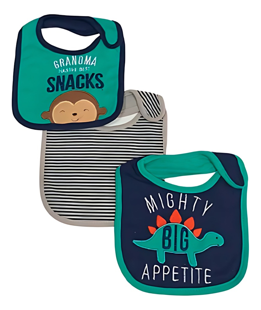 Sabemos que la hora de comer puede ser un reto, pero con el set de 3 baberos de algodón Little Ones, tu bebé estará protegido contra derrames y manchas, manteniendo su ropa impecable. Prácticos, suaves y seguros, son el accesorio ideal para el día a día.