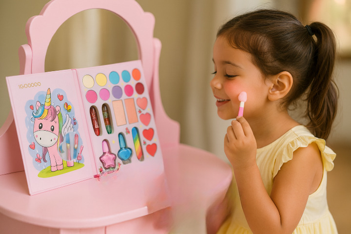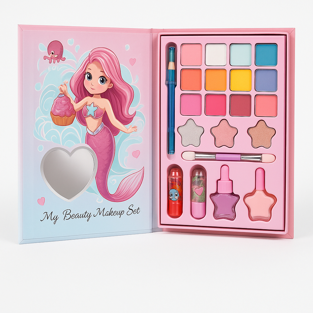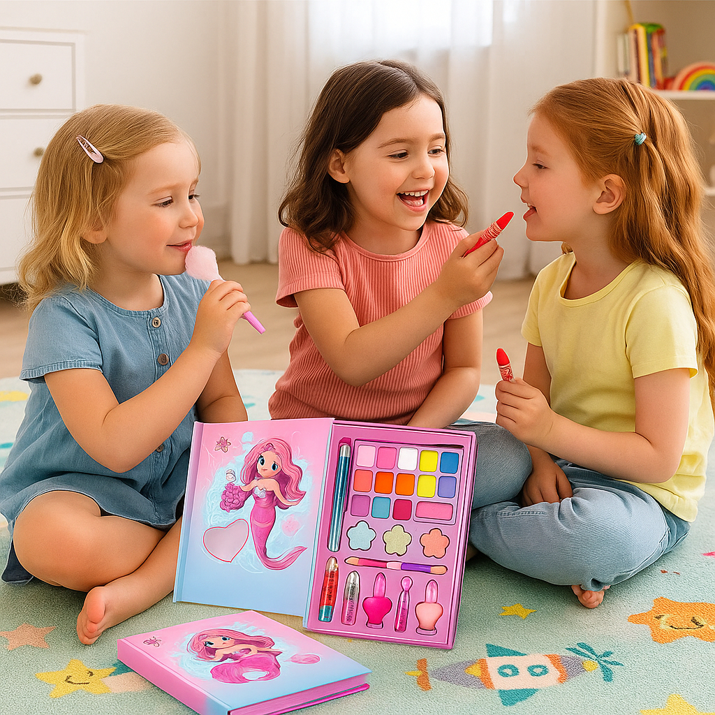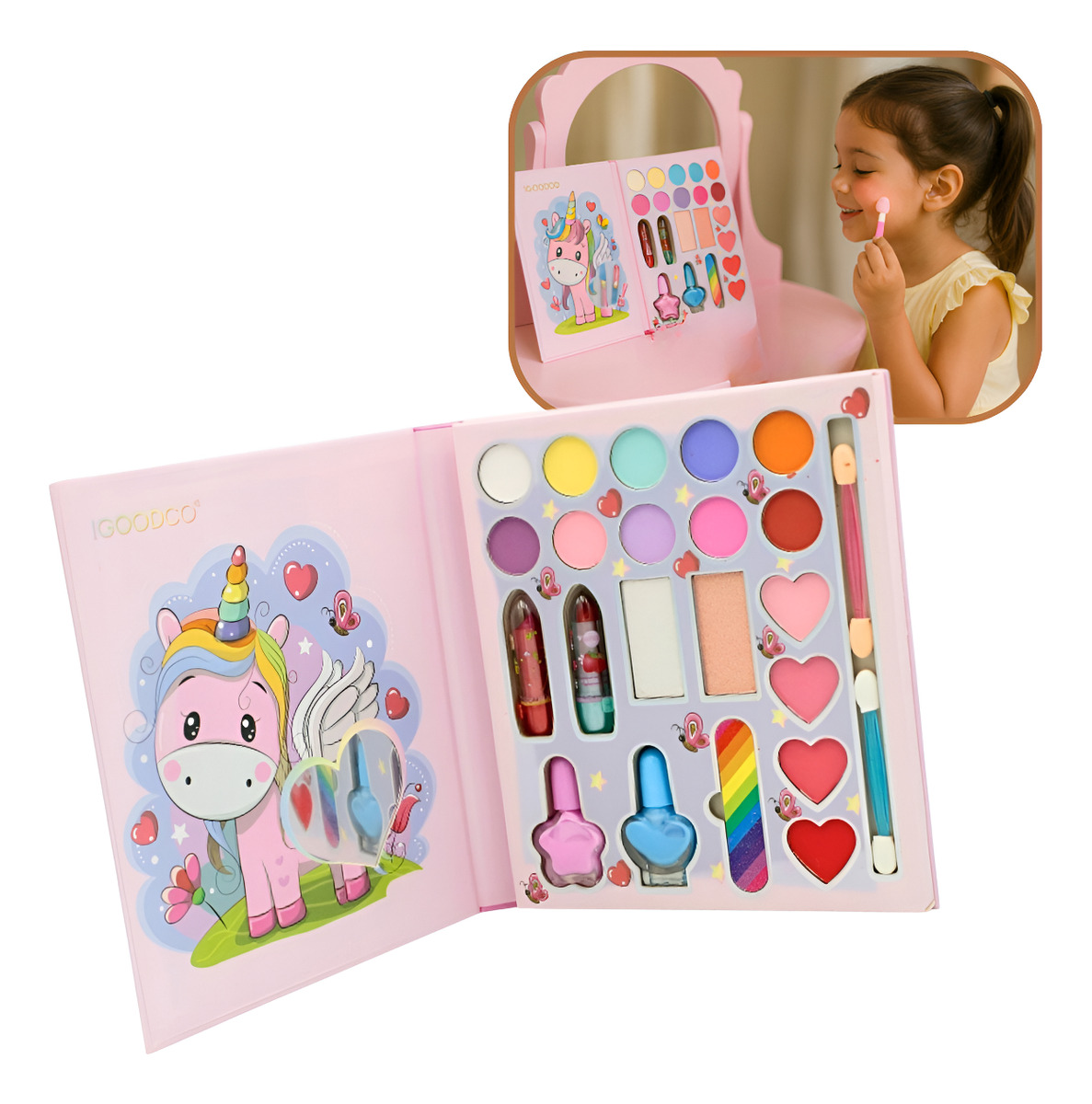 ¿Tu hija sueña con maquillarse como los adultos? Con la Paleta de Maquillaje Infantil Lavable podrá jugar de manera segura, creativa y divertida, imitando cosméticos reales sin riesgos para su piel.