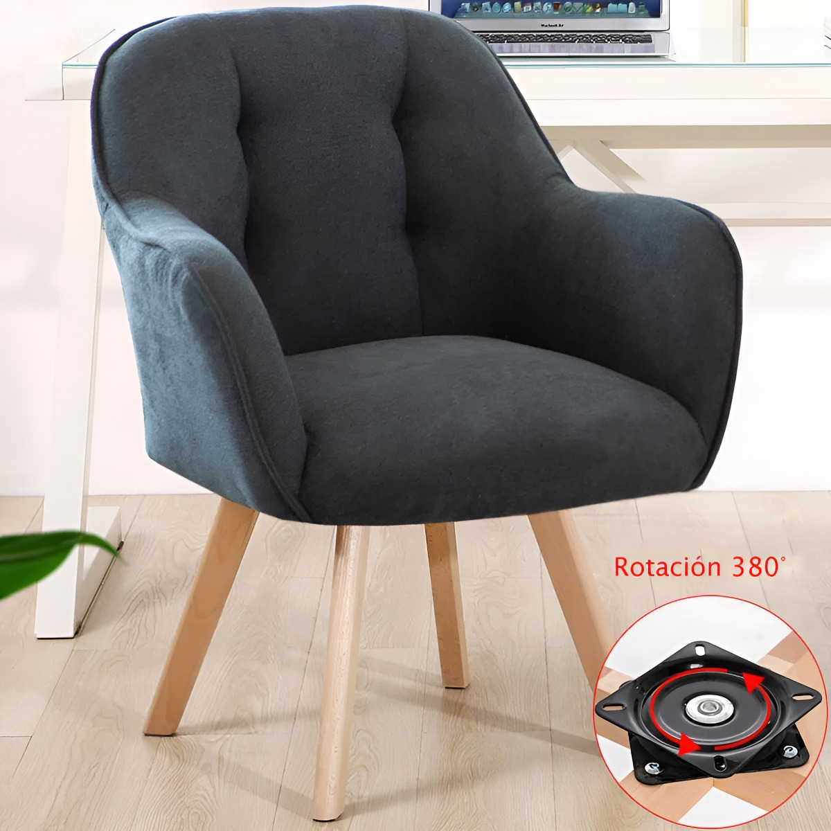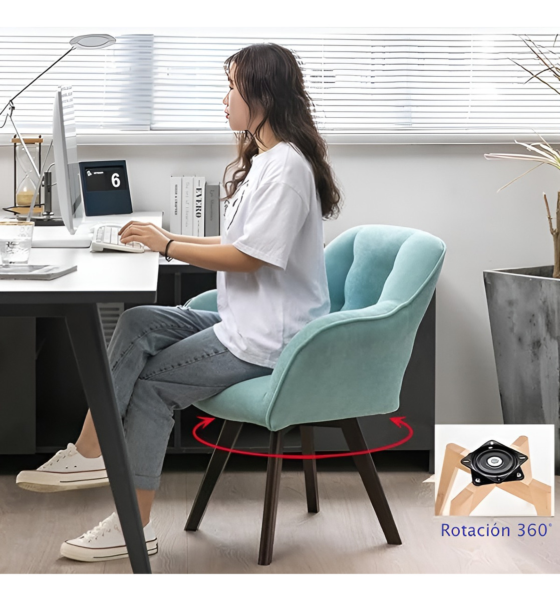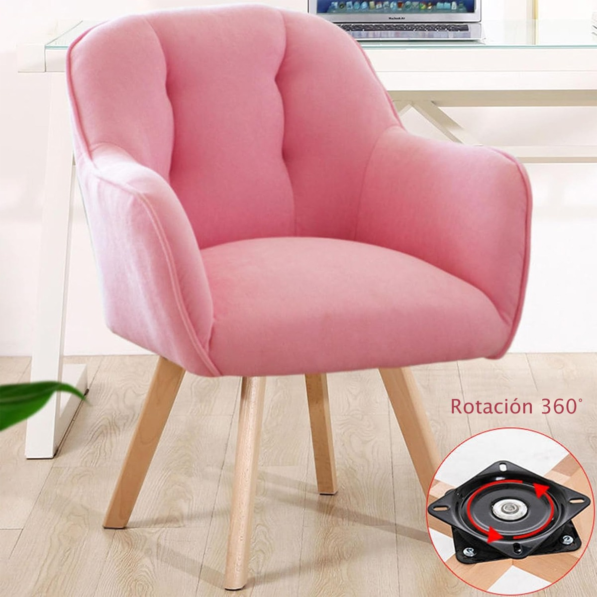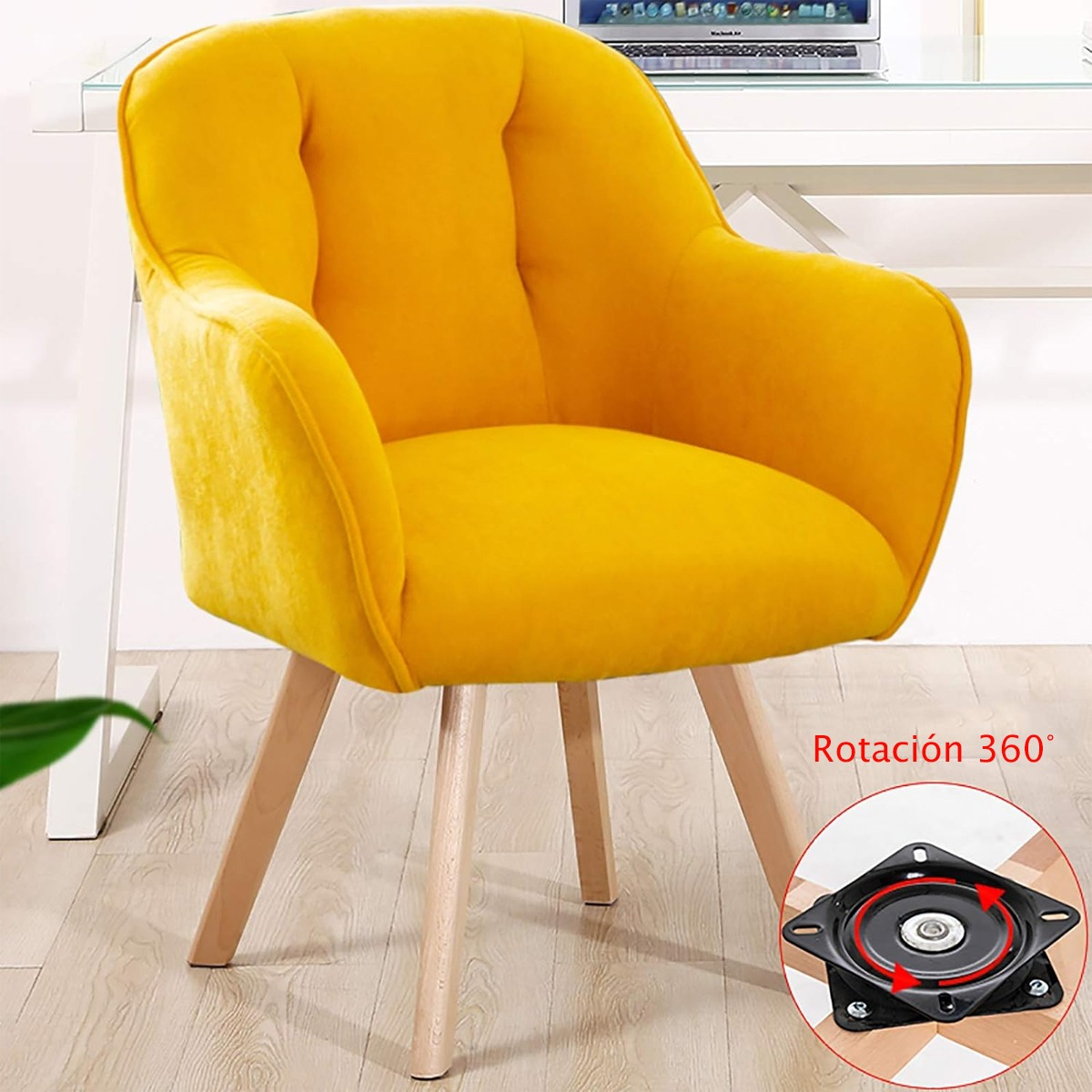 Experimenta la libertad de movimiento con nuestra silla giratoria, que ofrece una rotación completa de 360 grados para una mayor versatilidad y funcionalidad en cualquier entorno. Ideal para usar en la sala de estar, el comedor, el dormitorio u oficina.