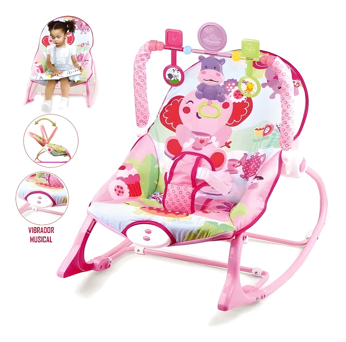 Silla Mecedora 3 Etapas Elefante Rosa – Comodidad, Seguridad y Diversión para Bebés