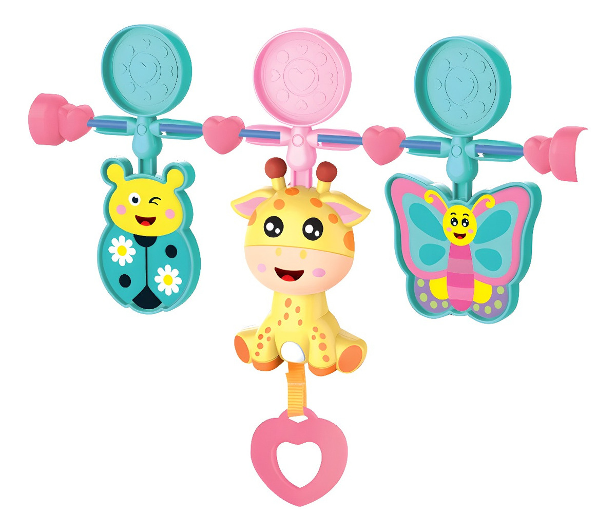 Incluye una barra removible con dos juguetes para golpear y un toldo, proporcionando horas de entretenimiento.